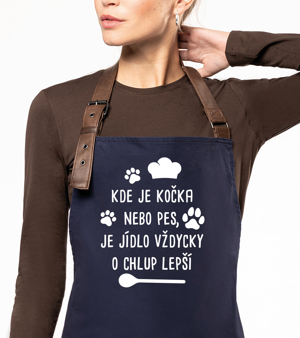 Vtipná dámská zástěra na vaření EXCLUSIVE - Kde je kočka nebo pes, je jídlo vždycky o chlup lepší