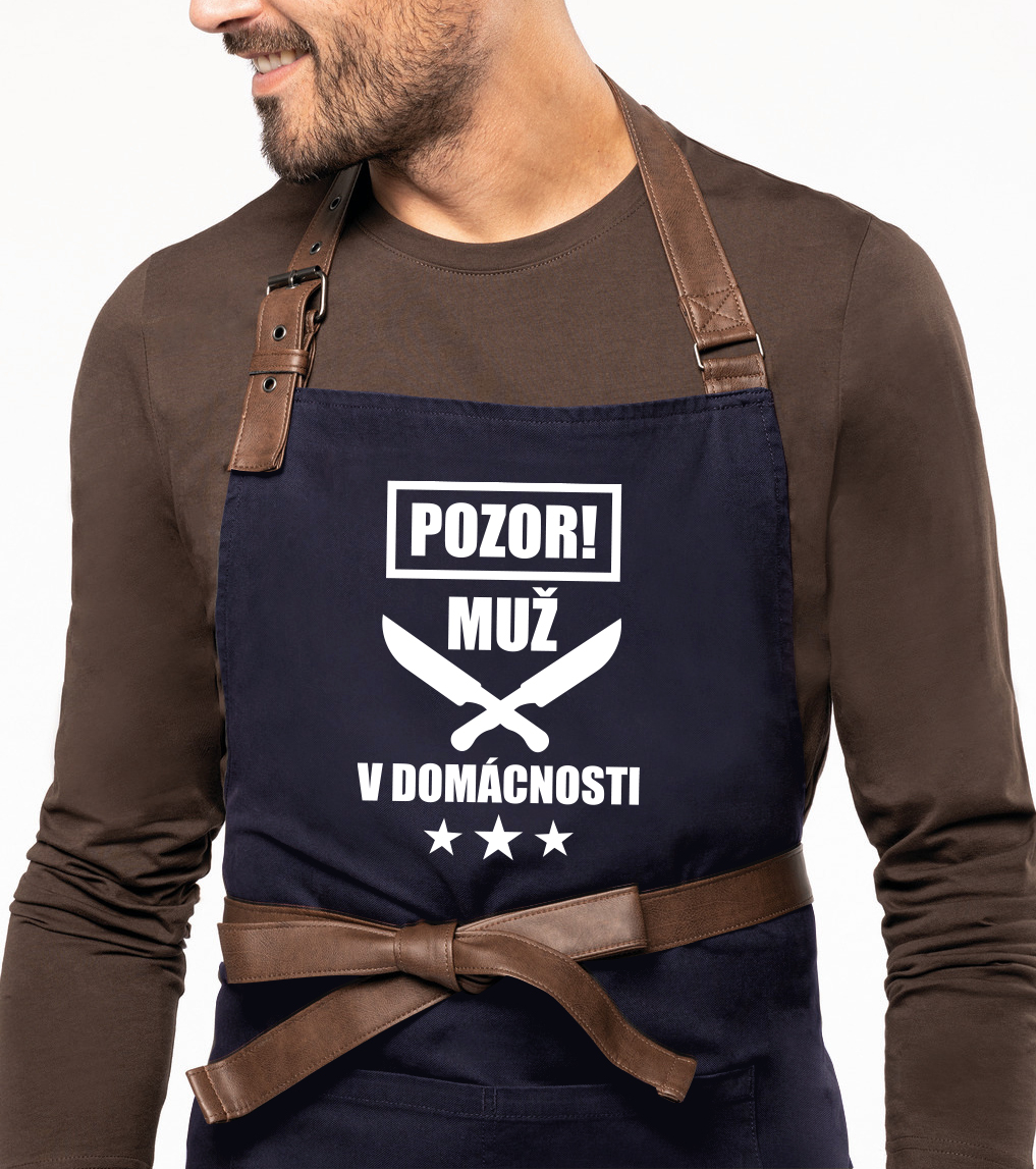 Vtipná zástěra na vaření EXCLUSIVE - Pozor! Muž v domácnosti