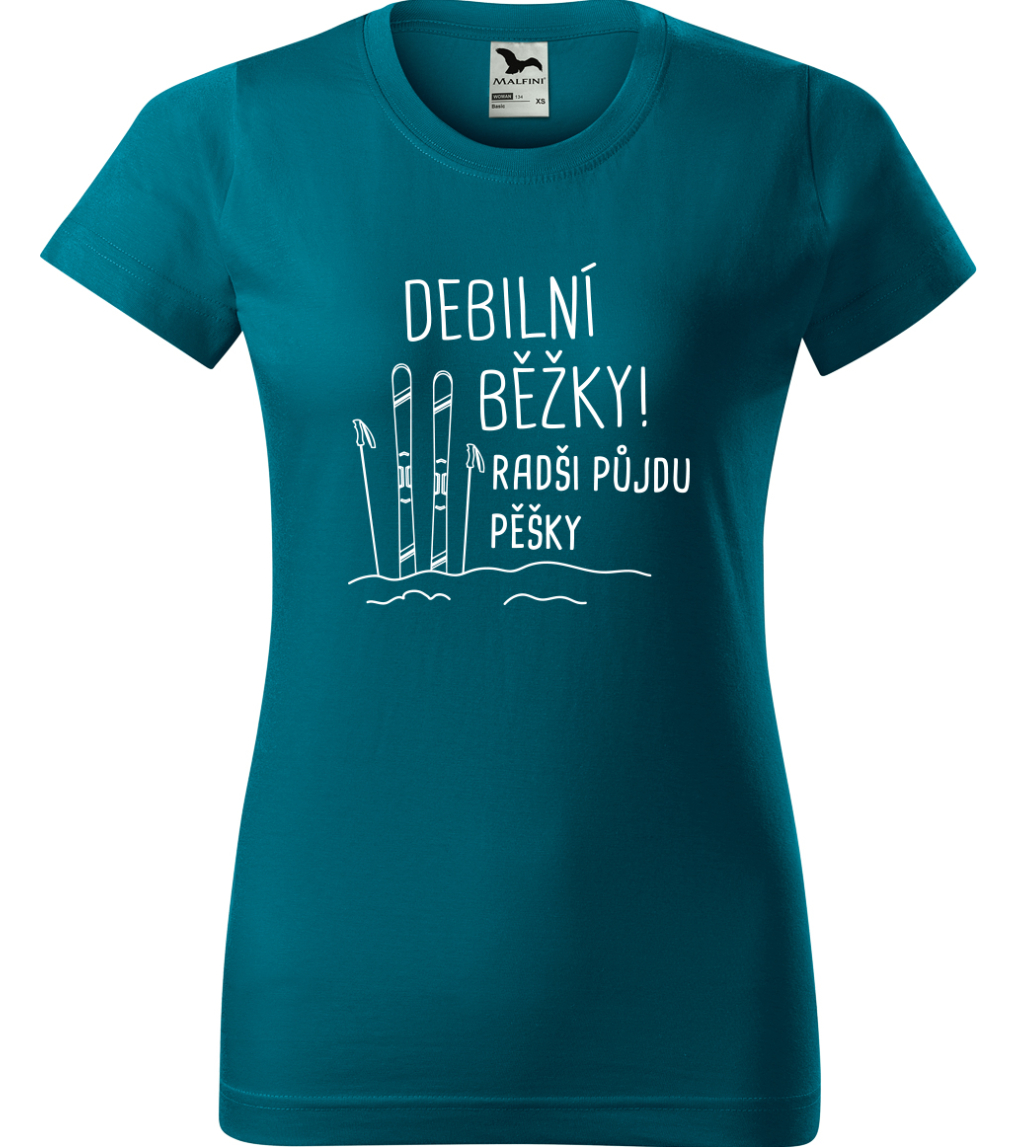 Tričko pro lyžařku Vtipné tričko pro lyžařku s motivem "Debilní běžky.. radši půjdu pěšky!" je tady pro všechny veselé lyžařky a běžkařky, které se nebojí být originální. Tričko pro lyžařku je vyrobené z kvalitní 100% bavlny, má příjemný vypasovaný střih a skvěle padne každému typu postavy. Nejlepší dárek pro ženu, která ráda běžkuje. Potěšte přítelkyni, manželku nebo třeba maminku, která je vášnivou běžkařkou. Lyžařské tričko vám nabízíme v široké nabídce barevných variant textilu. Pestré i přírodní odstíny. Všechna naše trička mají kvalitní a odolný potisk, který tvoříme pomocí nejmodernější technologie. Nahlédněte do spokojených recenzí našich zákazníků, kteří už naše trička nosí. Tričko pro lyžařku si můžete vybrat z velikostí od S až po 2XL (černá a bílá trička až 3XL).