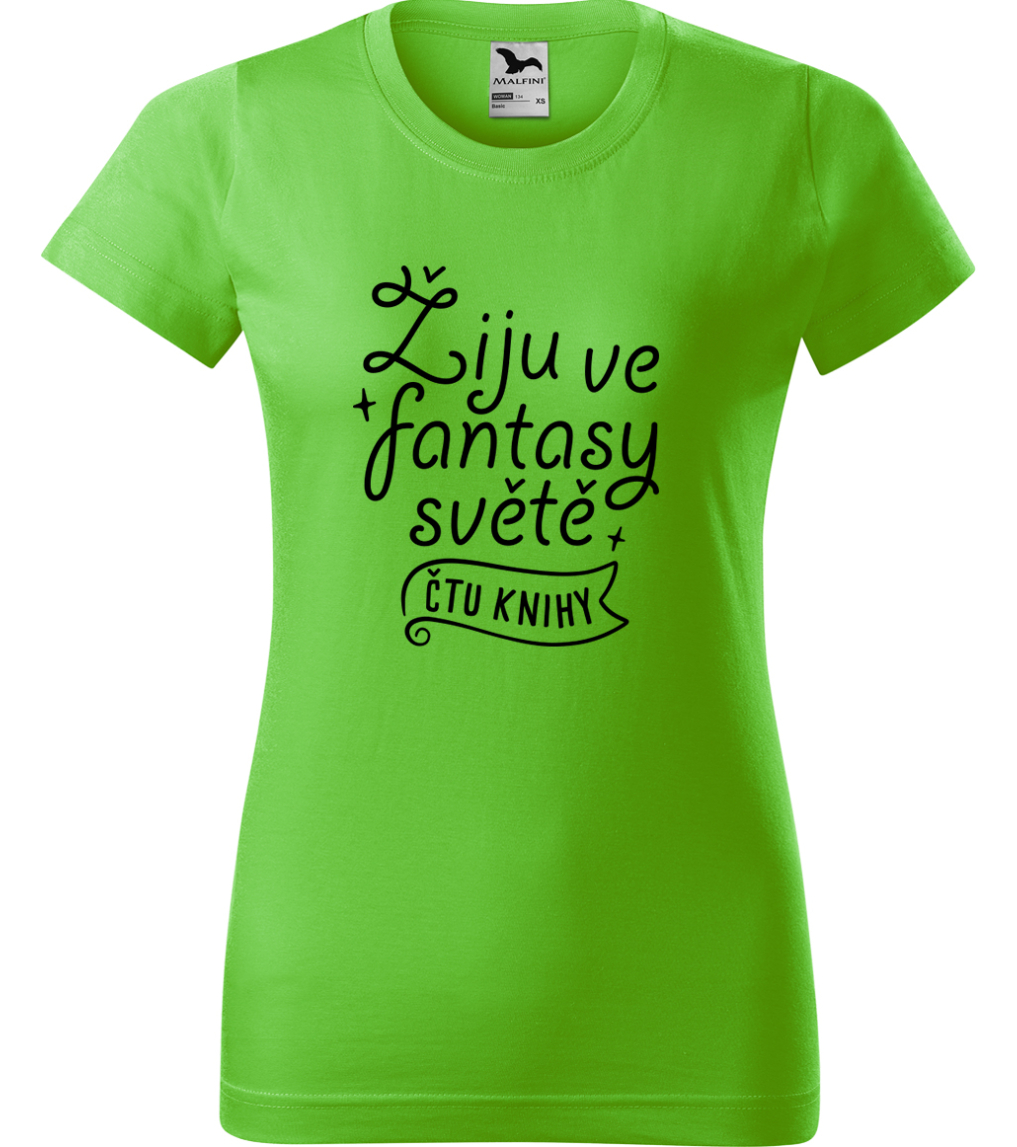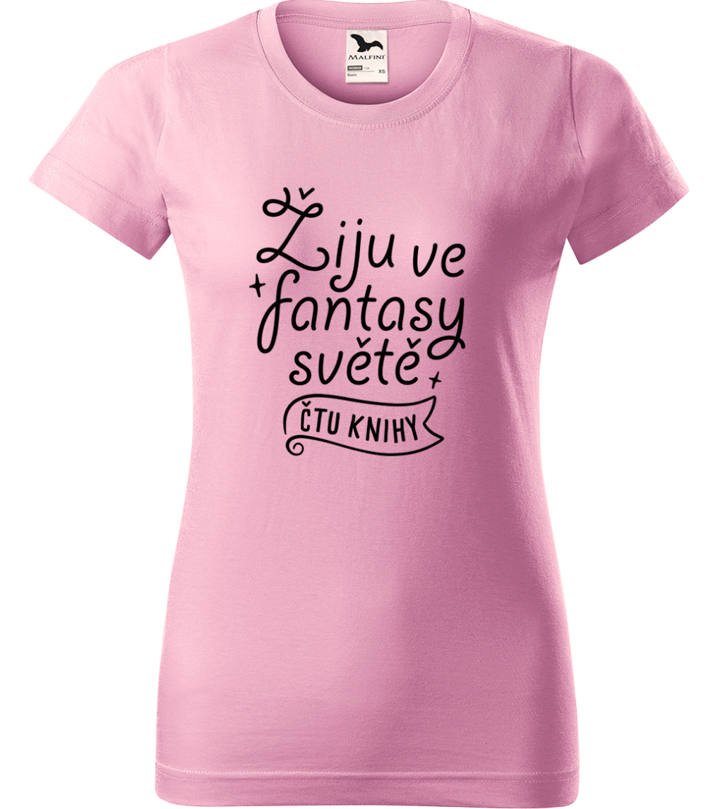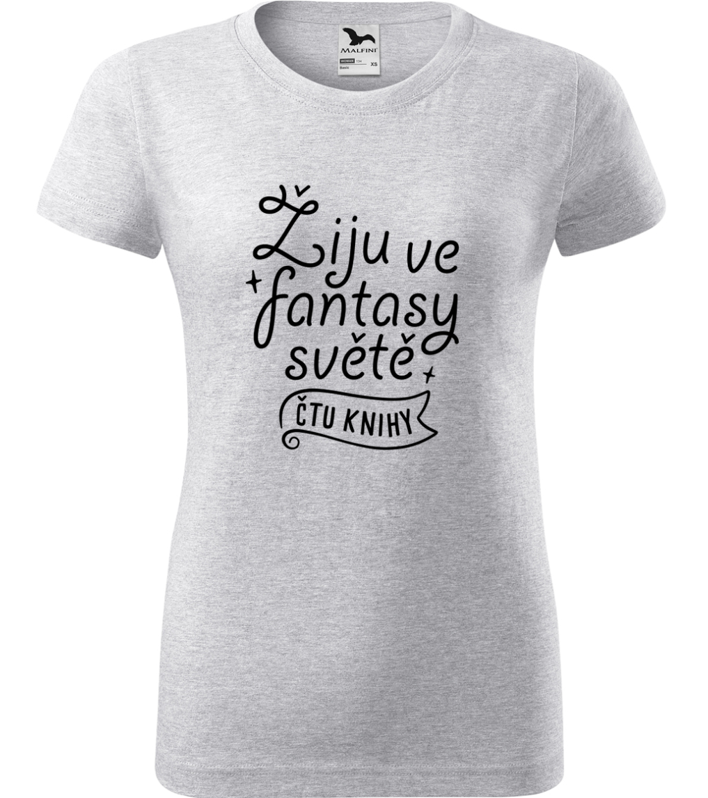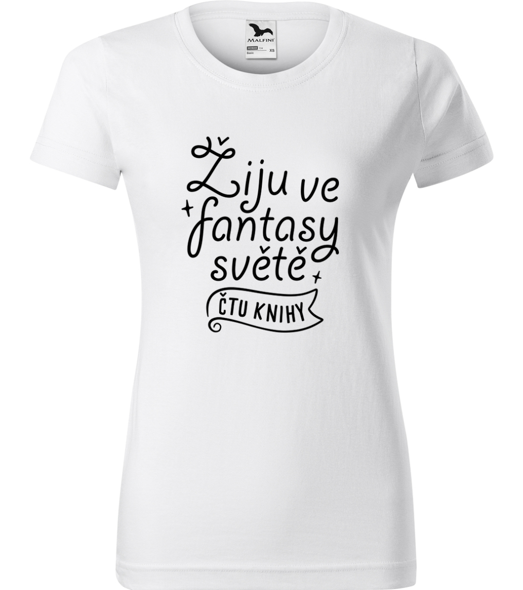 Dámské tričko s knihou - Žiju ve fantasy světě - čtu knihy