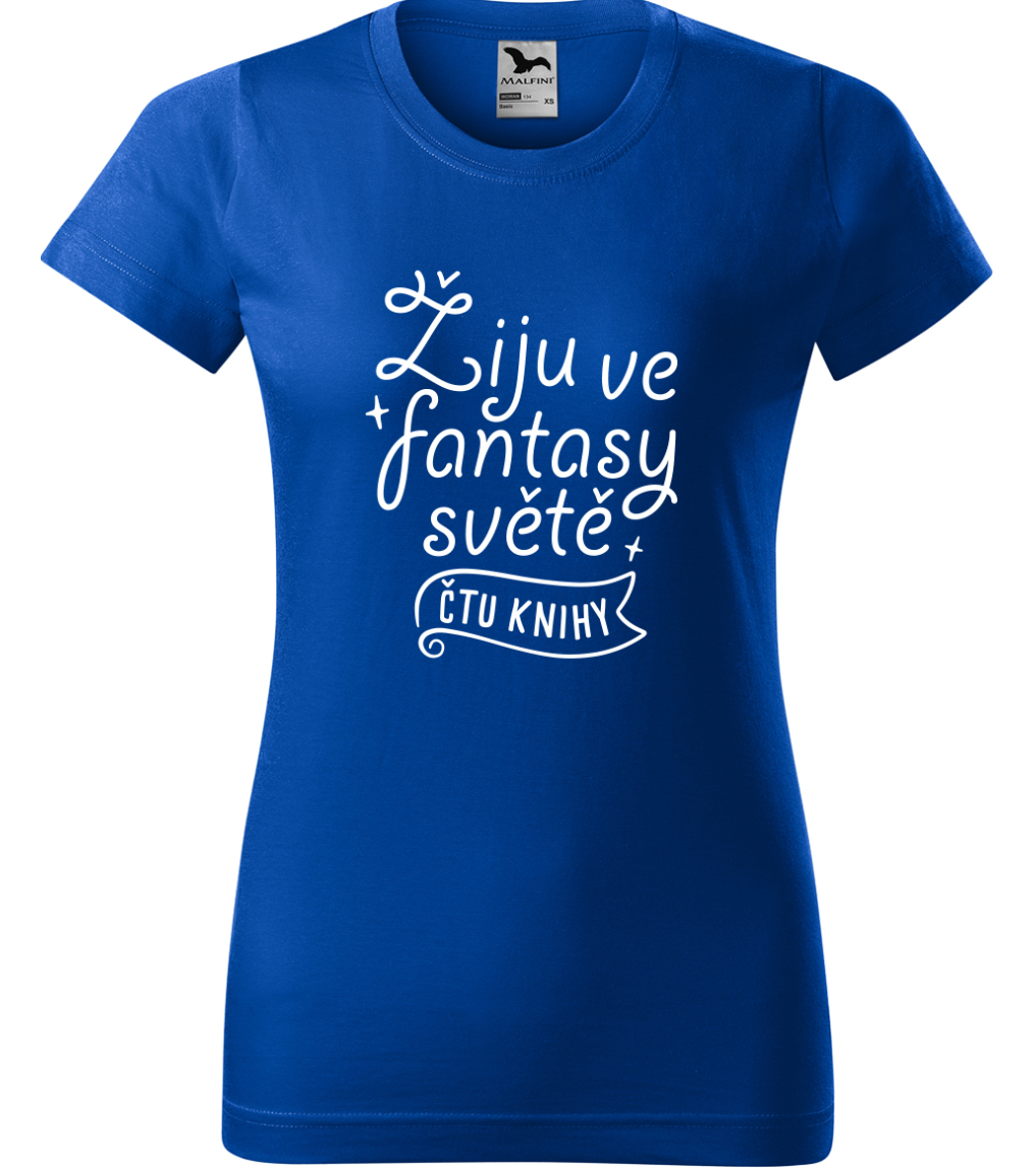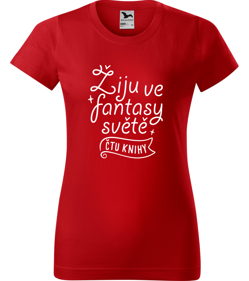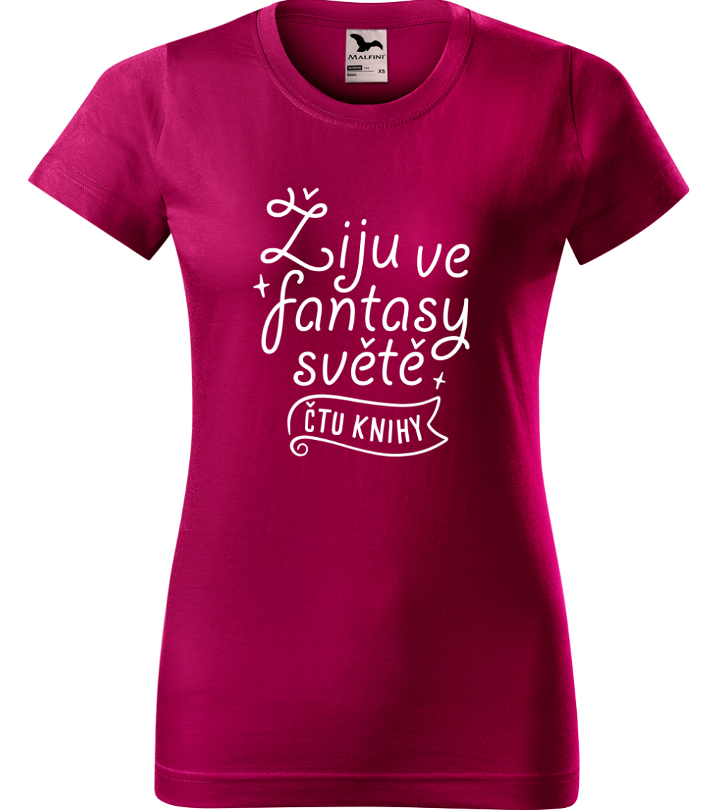 Dámské tričko s knihou - Žiju ve fantasy světě - čtu knihy