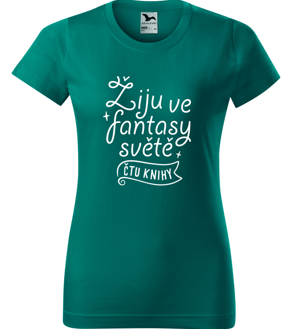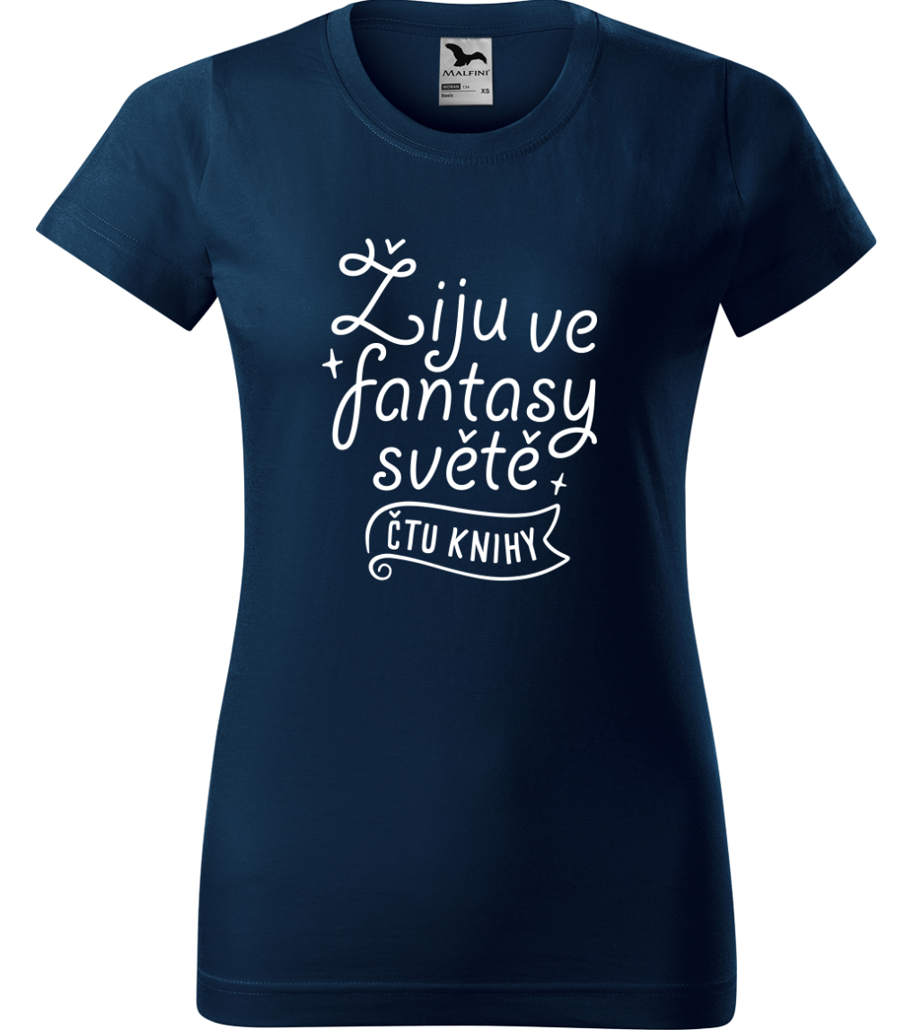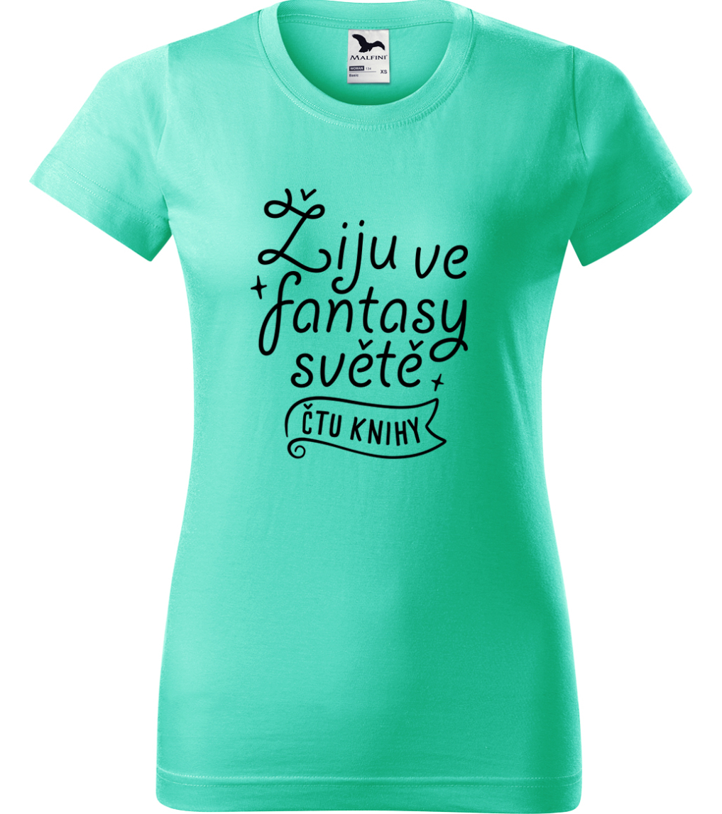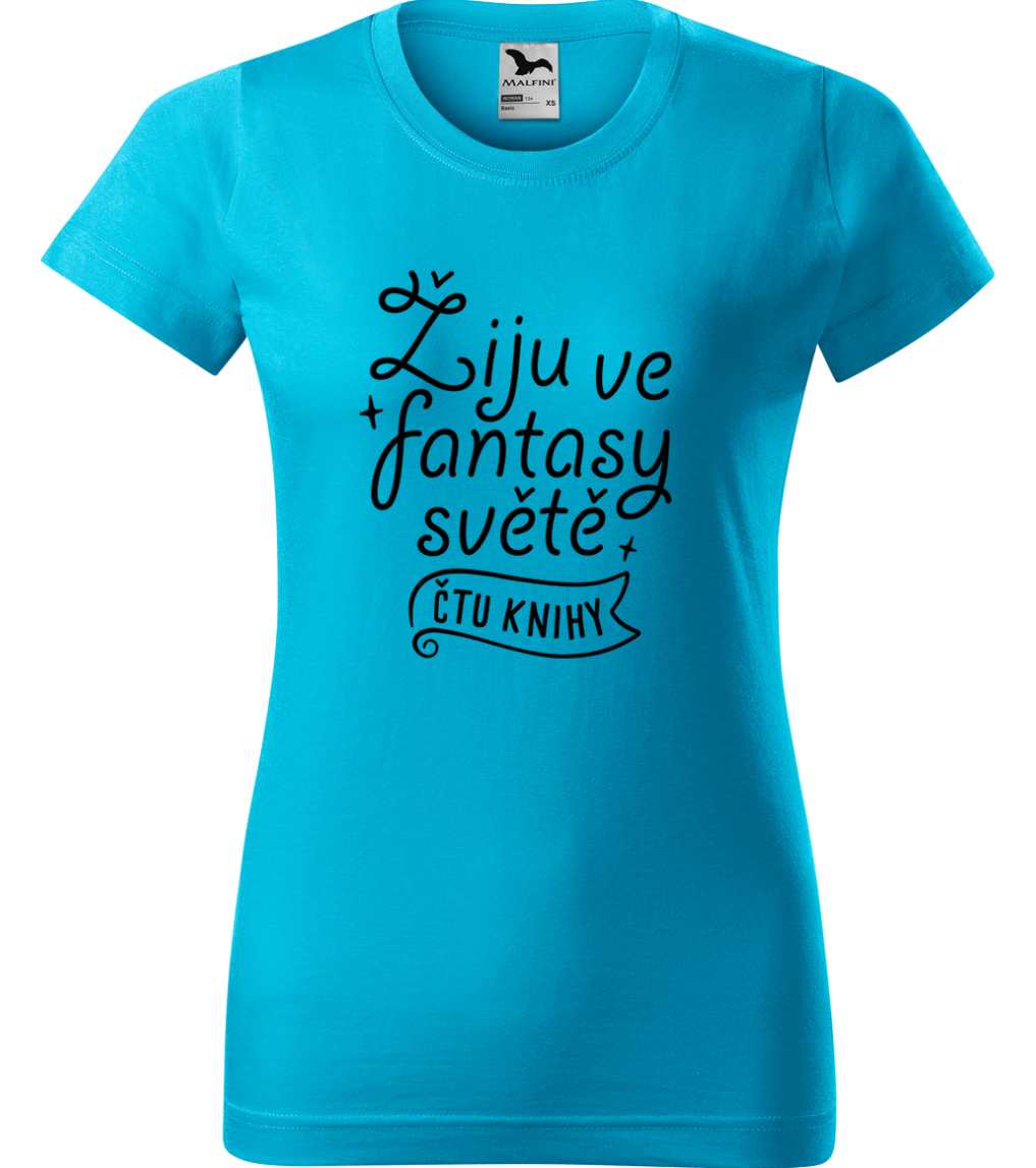 Dámské tričko s knihou - Žiju ve fantasy světě - čtu knihy