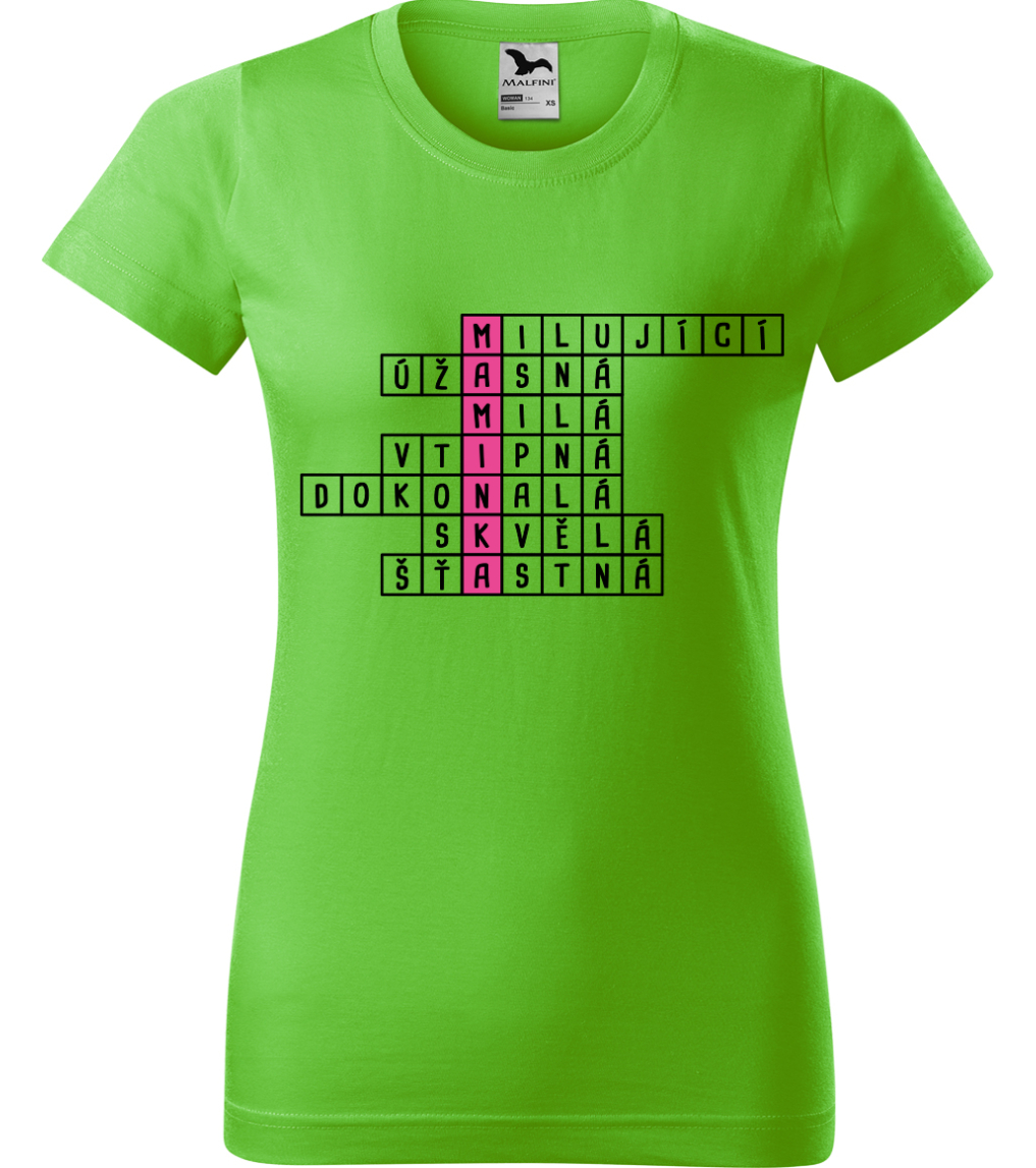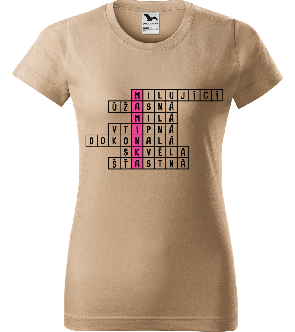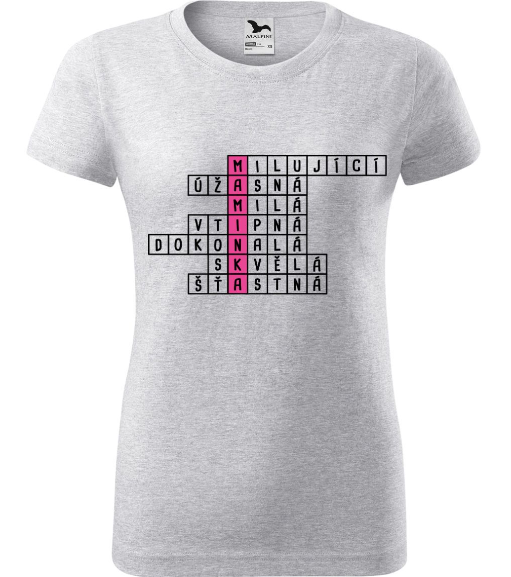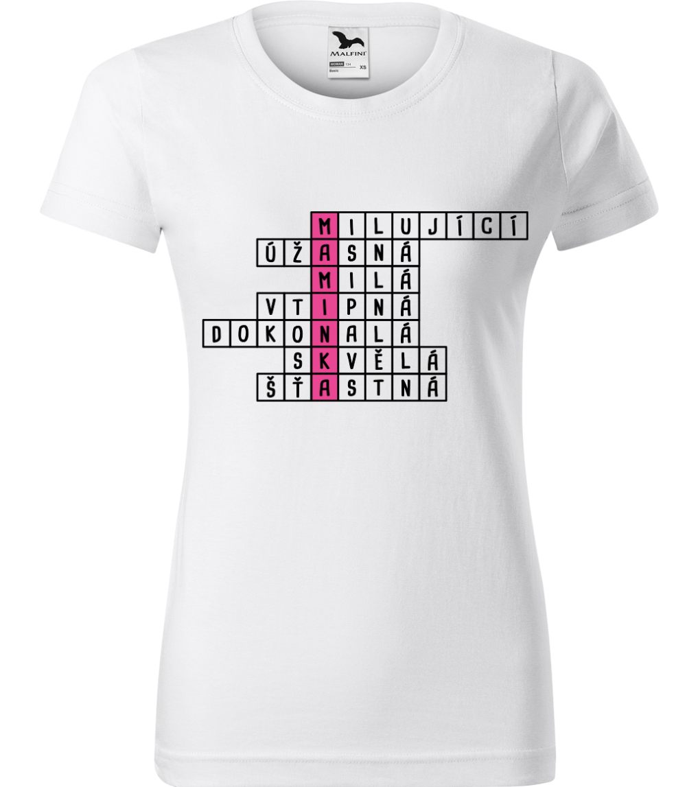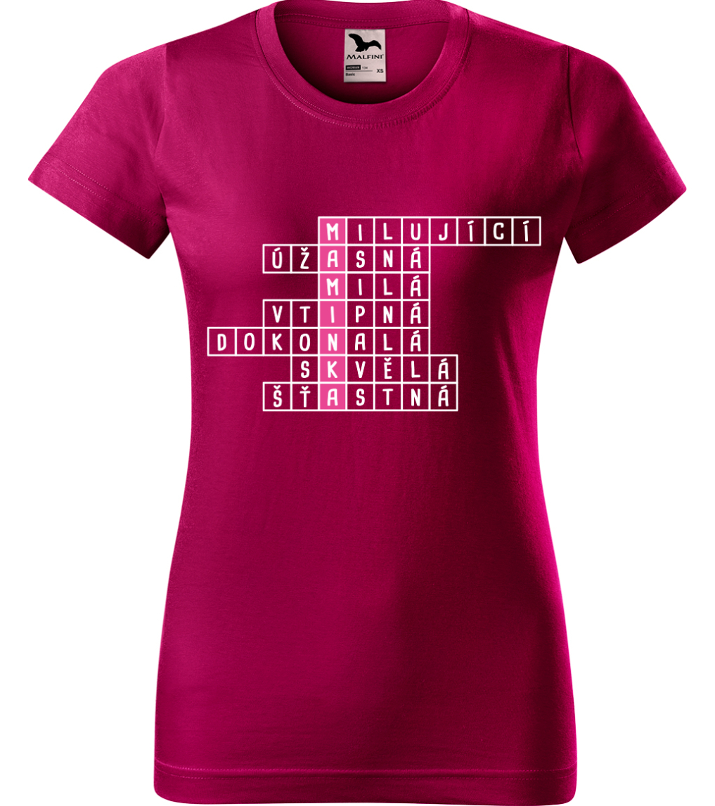 Dámské tričko s křížovkou je skvělý tip na dárek pro maminku. "Milující, úžasná, vtipná,.." a další milá slova v křížovce vytvoří tajenku, ve které je slovo "maminka". Toto 100% bavlněné tričko s kvalitním potiskem potěší i vaší mamku. Tričko si můžete vybrat z velikostí od S až po 2XL (černé a bílé tričko až 3XL) a z mnoha barevných variant. Tričko pro maminku má vyšší gramáž textilu a příjemný vypasovaný střih, skvěle padne každému typu dámské postavy. Máte i vy maminku, která je vášnivá křížovkářka? Udělejte mámě radost k narozeninám nebo třeba k Vánocům. Tričko s milým potiskem je dárek, který nejen potěší, ale je i praktický. Garantujeme vám, že toto tričko se stane maminčiným oblíbeným kouskem oblečení. Tričko pro křížovkářku má kvalitní potisk, který tvoříme nejmodernější tiskovou technologií.