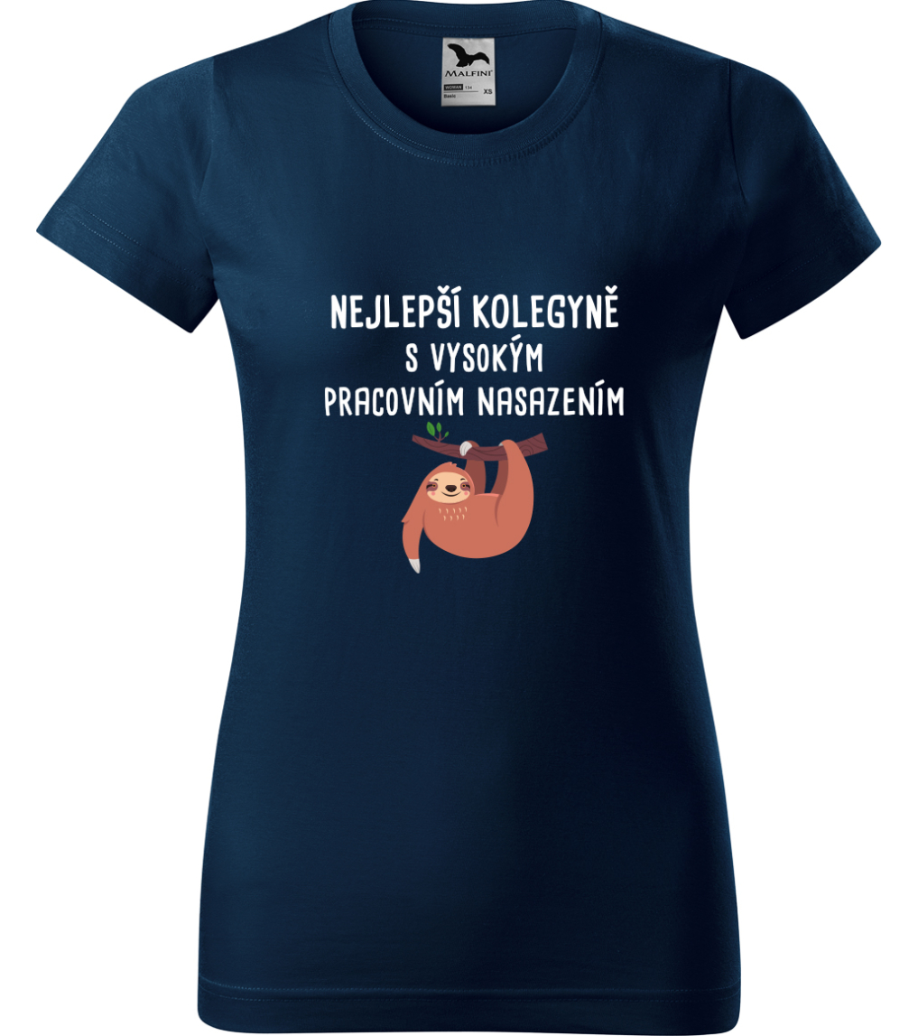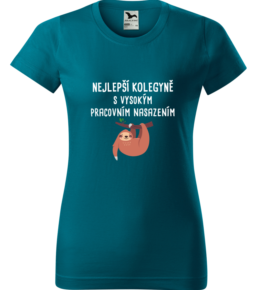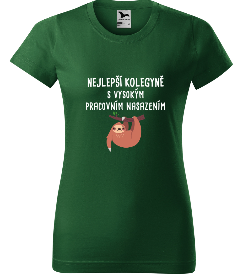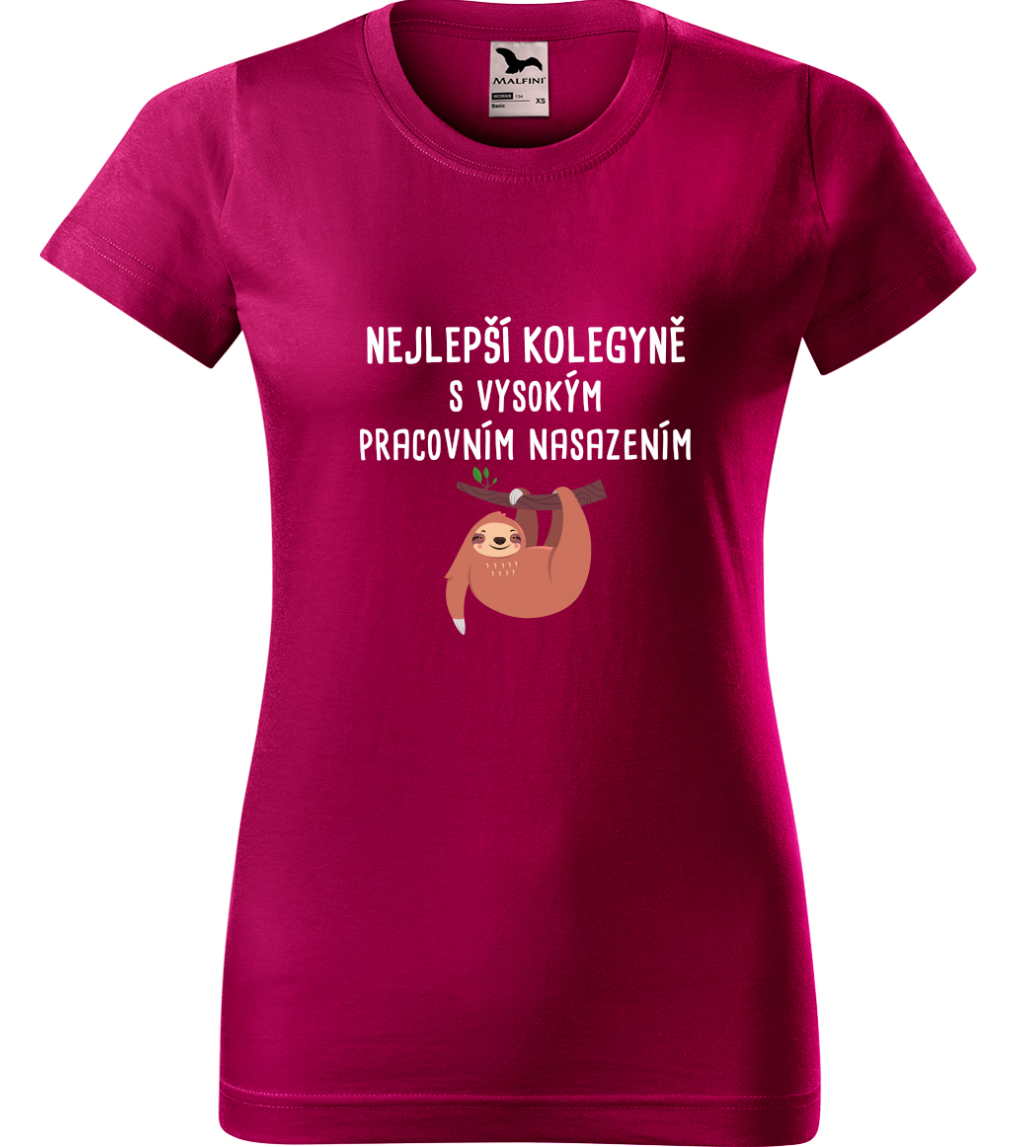 Vtipné tričko do práce s motivem lenochoda a textem "Nejlepší kolegyně s vysokým pracovním nasazením" je tady pro všechny nejlepší kolegyně, které mají opravdu vysoké pracovní nasazení.. stejně jako lenochod. Nejlepší kousek oblečení do práce, kterým pobavíte všechny okolo. Hledáte dárek pro vtipnou kolegyni? Pořiďte jí kvalitní 100% bavlněné tričko s veselým motivem. Tričko do práce má vyšší gramáž textilu a příjemný vypasovaný střih. U nás si můžete vybrat z mnoha velikostí a to od S až po 2XL (černé tričko až 3XL). Nejlepší dárek pro kolegyni, který se stane jejím oblíbeným pracovním outfitem. Vtipné tričko do práce má kvalitní potisk - na trička tiskneme pomocí nejmodernější tiskové technologie, která zaručuje odolnost a perfektní vzhled.