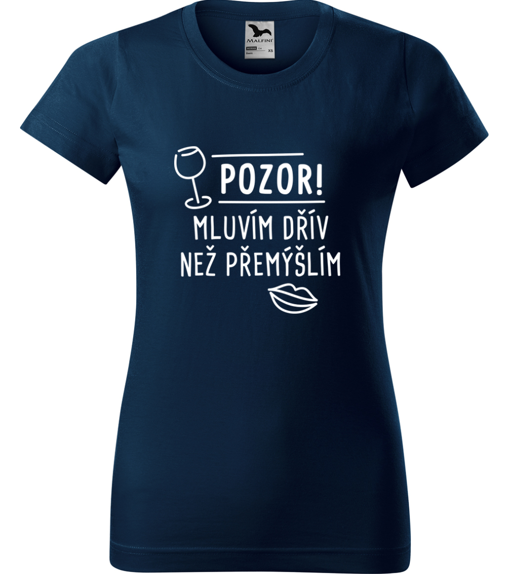 Dámské vtipné tričko - Pozor! Mluvím dřív než přemýšlím