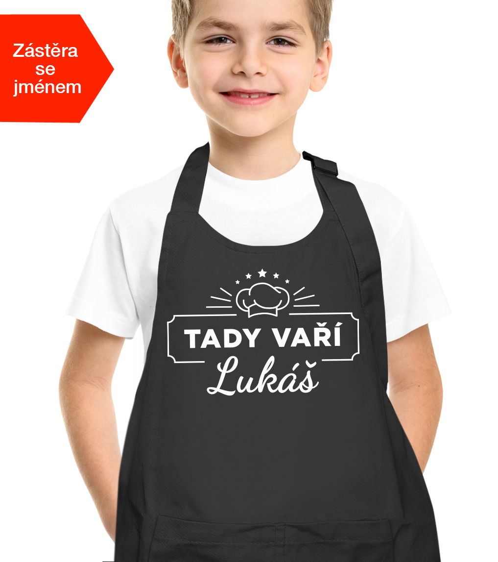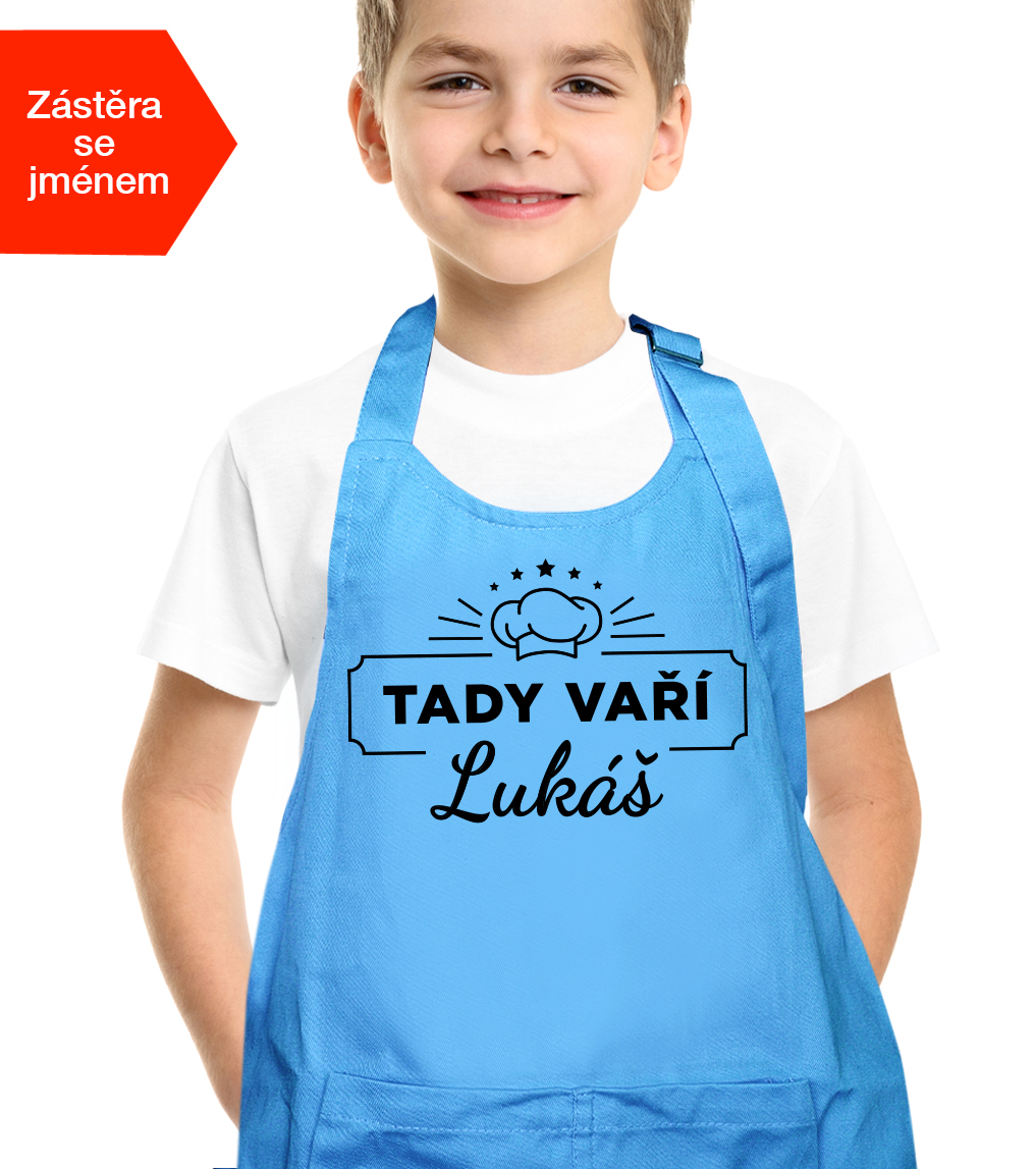 Dětská zástěra na vaření pro chlapce se jménem - Tady vaří..