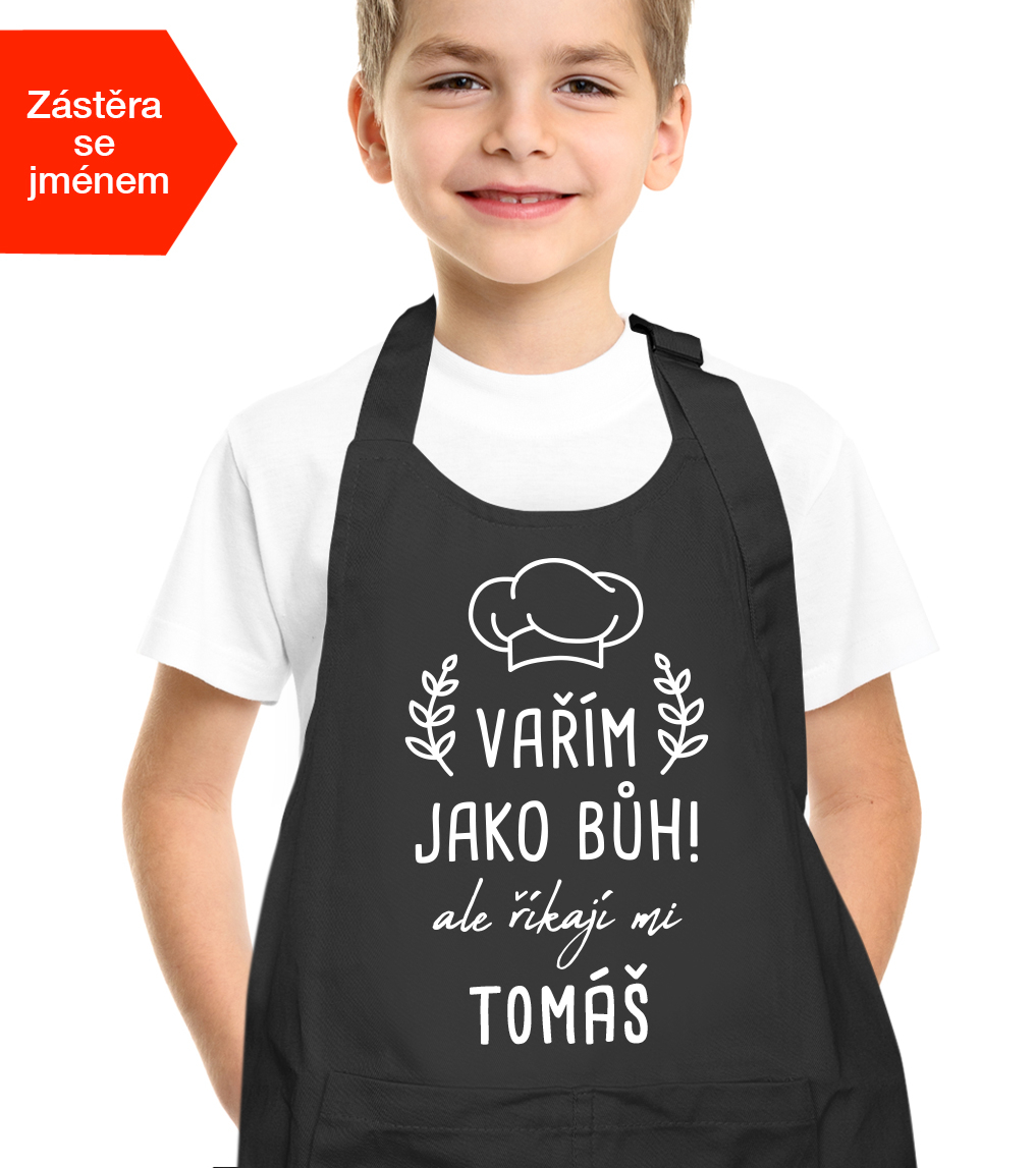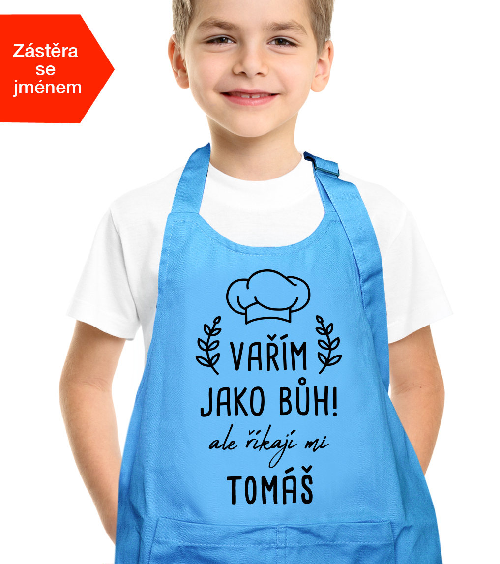 Dětská zástěra na vaření se jménem - Vařím jako bůh, ale říkají mi..