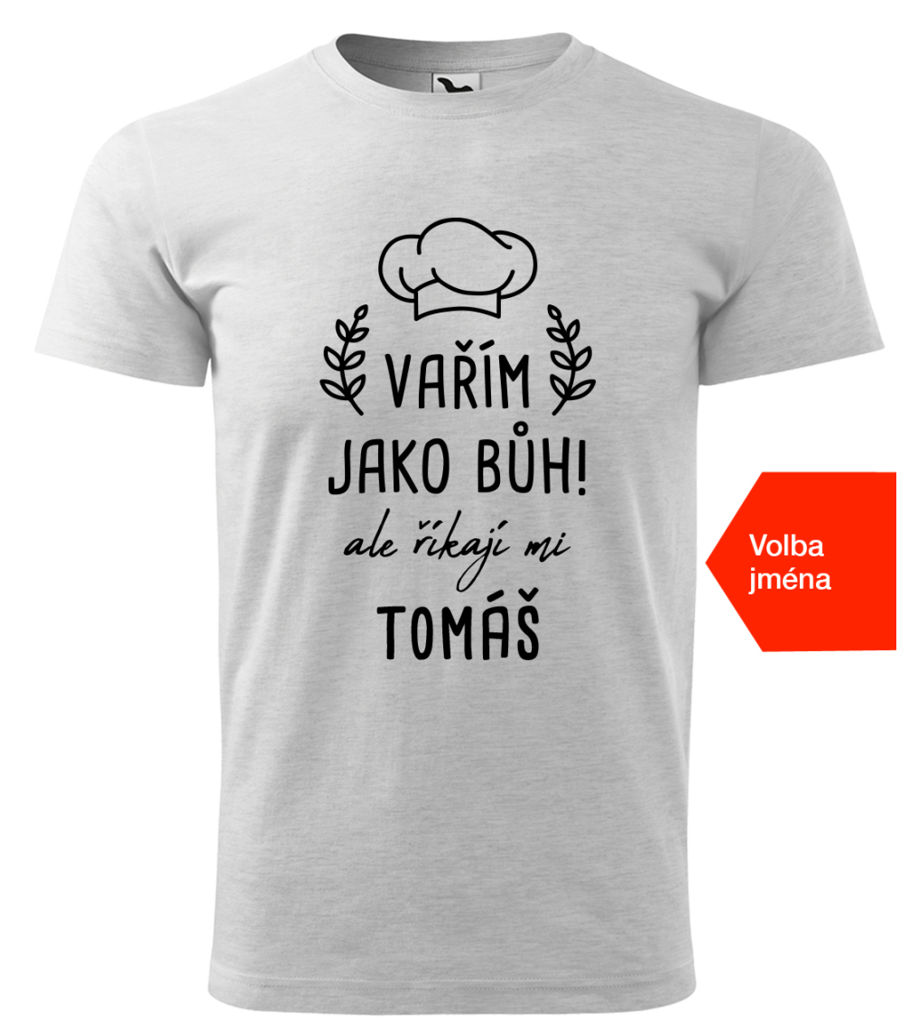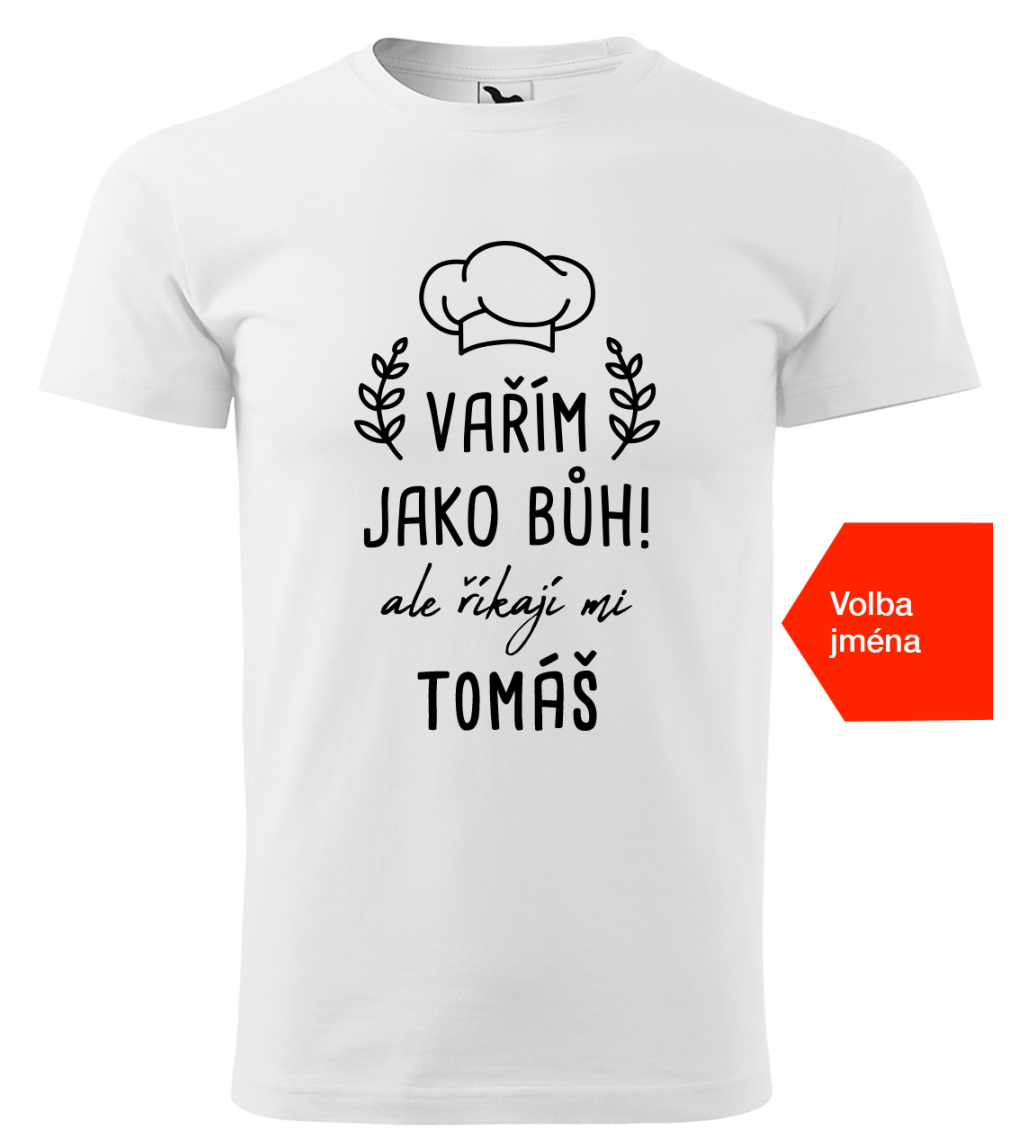 Dětské tričko pro kuchaře s potiskem "Vařím, jako bůh, ale říkají mi..(jméno chlapce)" je to nejlepší, co si na sebe při vaření může váš syn nebo vnuk obléct. Tričko se jménem je vyrobené z kvalitní 100% bavlny, má moderní volnější střih a skvěle padne každému typu dětské postavy - jen u nás si můžete vybrat z velikostí od 4 až do 12ti let. Dárek pro malého kuchaře, kterým uděláte opravdovou radost. V našich tričkách se skvěle vaří! Pokud váš syn nebo vnuk vaří jako bůh, pořiďte mu naše tričko s jeho vlastním jménem. Na tričko vytiskneme jméno, které napíšete do poznámky. Všechny naše produkty mají špičkovou kvalitu. Na textil používáme nemodernější tiskovou technologii, která zaručuje vysokou kvalitu potisků a krásný profesionální vzhled. Tričko pro všechny malé božské kuchaře si zamiluje každý chlapec, který tvoří nebesky dobré pokrmy.