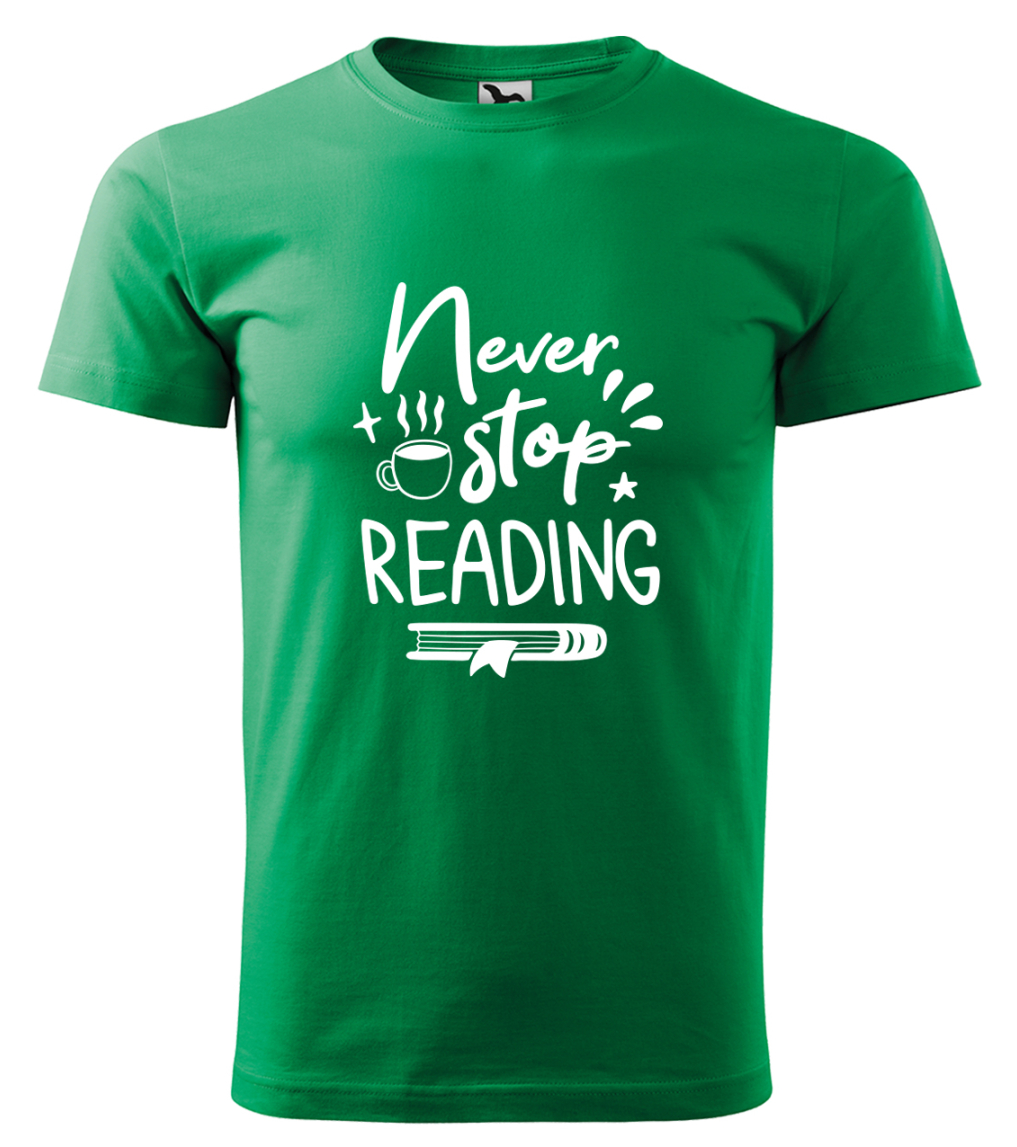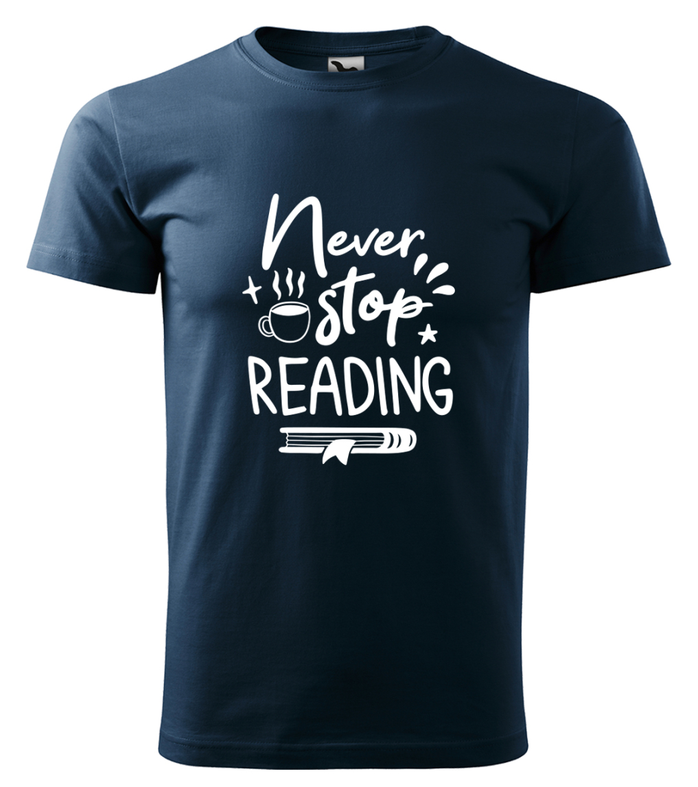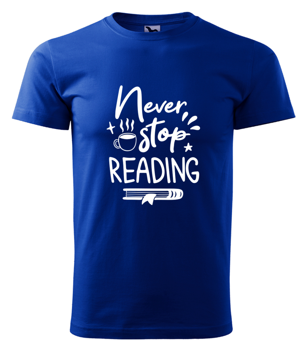 Dětské tričko s knihou a motivem "Never stop reading" potřebuje v šatníku každý malý vášnivý čtenář a knihomol. Čtení je totiž ta nejlepší závislost. Pokud i vaše děti patří mezi knižní závisláky, pořiďte jim toto stylové tričko, které je vyrobené z kvalitní 100% bavlny vyšší gramáže. Jen u nás si můžete vybrat z mnoha barevných variant pro kluky i holčičky a z velikostí od 4 až do 12ti let. Tričko s knihou má kvalitní potisk, nepoužíváme žádné laciné nažehlovací samolepky, ale opravdový potisk, který je přímo na textilu. Skvělý tip na dárek pro malé milovníky knih. Máte doma děti, které čtou jednu za druhou? Garantujeme vám, že toto tričko se stane jejich novým nejoblíbenějším kouskem oblečení. Čtení obohacuje mysl i duši a proto.. nikdy nepřestávejte číst..