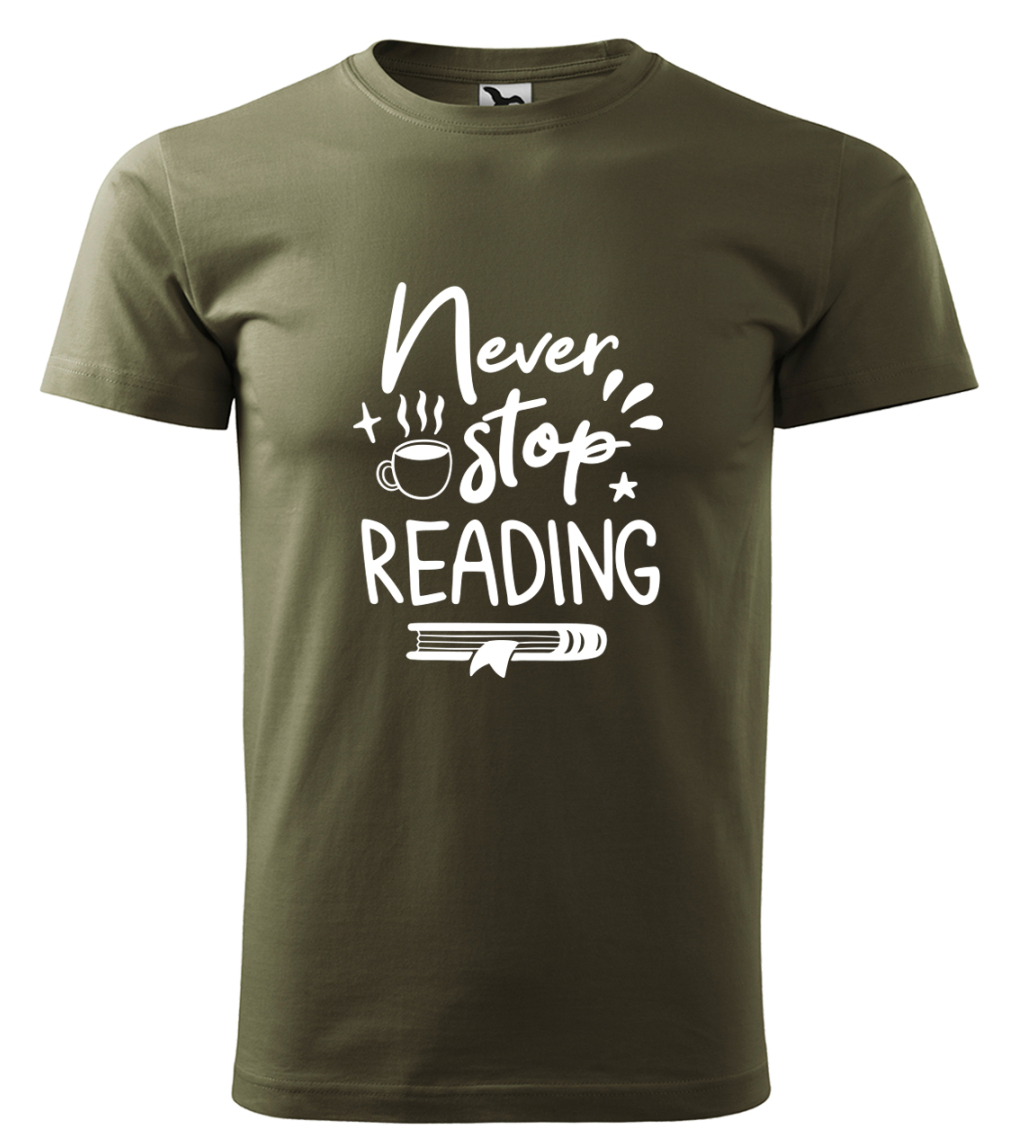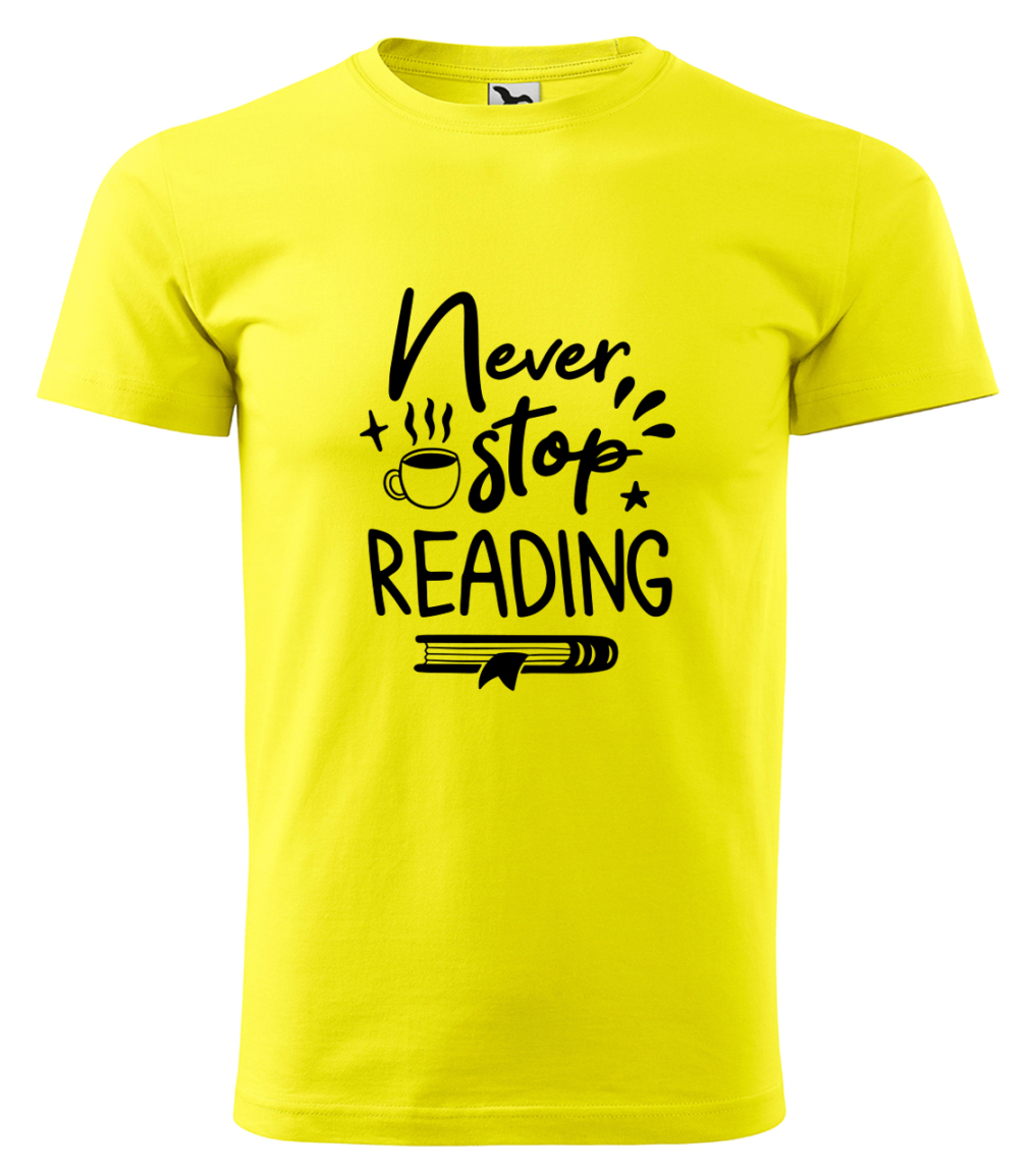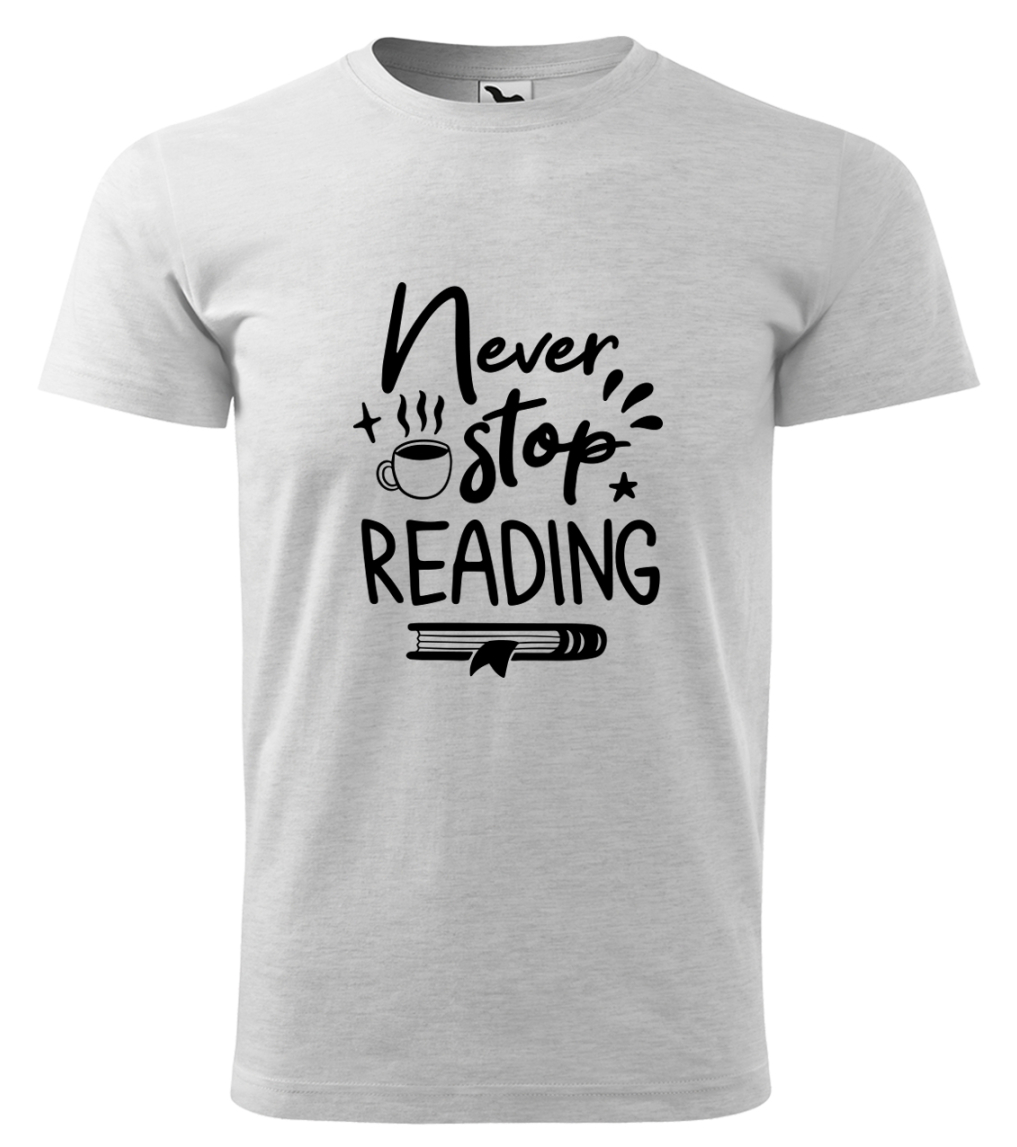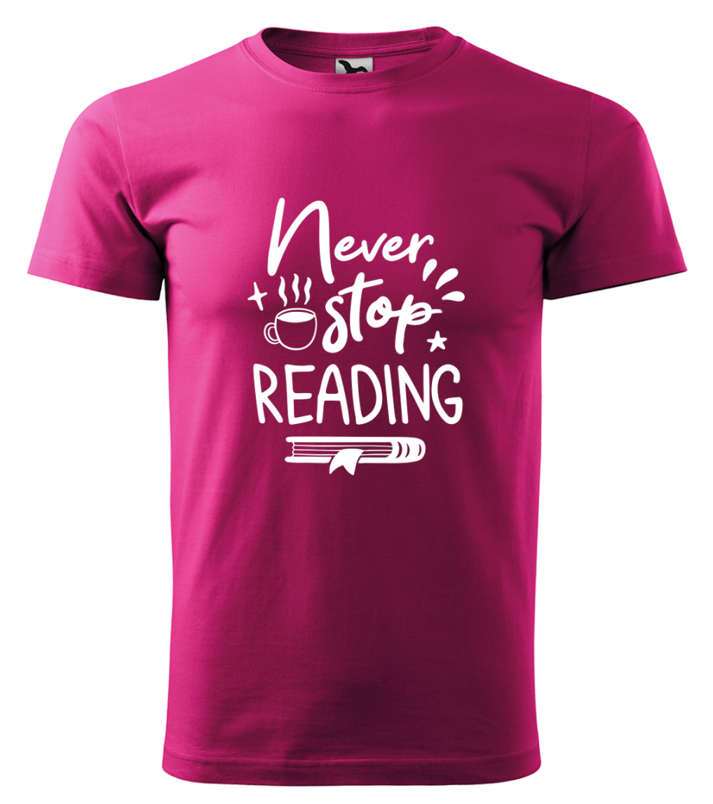 Dětské tričko s knihou a motivem "Never stop reading" potřebuje v šatníku každý malý vášnivý čtenář a knihomol. Čtení je totiž ta nejlepší závislost. Pokud i vaše děti patří mezi knižní závisláky, pořiďte jim toto stylové tričko, které je vyrobené z kvalitní 100% bavlny vyšší gramáže. Jen u nás si můžete vybrat z mnoha barevných variant pro kluky i holčičky a z velikostí od 4 až do 12ti let. Tričko s knihou má kvalitní potisk, nepoužíváme žádné laciné nažehlovací samolepky, ale opravdový potisk, který je přímo na textilu. Skvělý tip na dárek pro malé milovníky knih. Máte doma děti, které čtou jednu za druhou? Garantujeme vám, že toto tričko se stane jejich novým nejoblíbenějším kouskem oblečení. Čtení obohacuje mysl i duši a proto.. nikdy nepřestávejte číst..