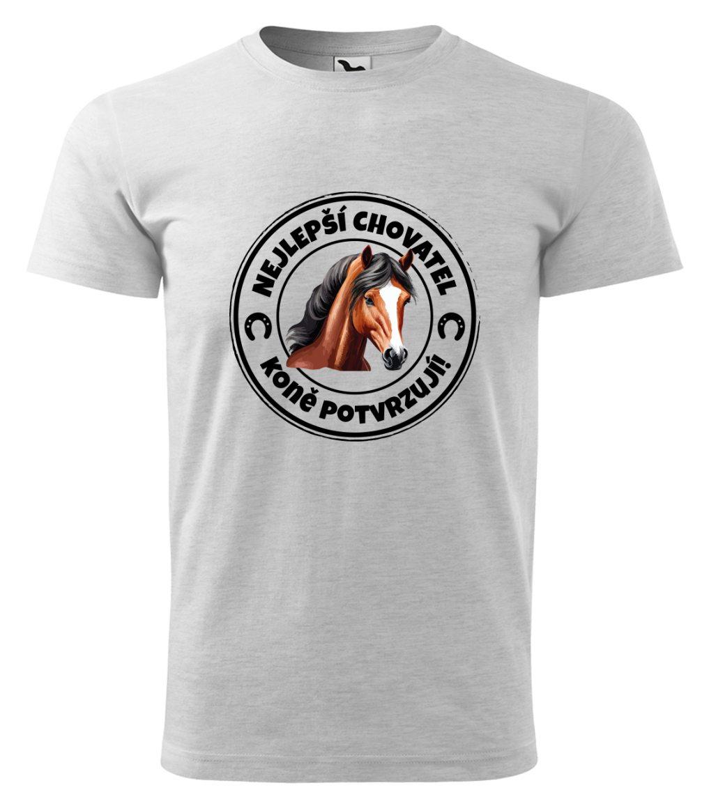 Hledáte dárek pro malého milovníka koní? Pro chlapce, který se úžasně stará o koně? Máme pro vás dětské tričko s koněm a nápisem "Nejlepší chovatel - koně potvrzují!". Nejlepší kousek oblečení, které potřebuje v šatníku každý malý koňák. Tričko s koněm je vyrobené z kvalitní 100% bavlny vyšší gramáže a má moderní volnější střih - díky tomu je opravdu pohodlné při nošení. Tričko pro milovníka koní vám nabízíme k výběru z mnoha barevných variant triček - světlé i tmavé odstíny, pestré i přírodní tóny. Výběr je jen na vás. Také si u nás můžete vybrat z široké škály dětských velikostí. Vtipné tričko s koněm má kvalitní potisk, nepoužíváme levné nažehlovací samolepky, ale tvoříme opravdový potisk, který je přímo na textilu trička. Nahlédněte do spokojených recenzí a sami si ověřte kvalitu našich produktů a služeb.