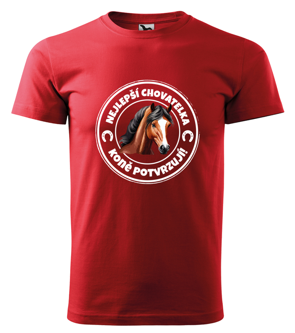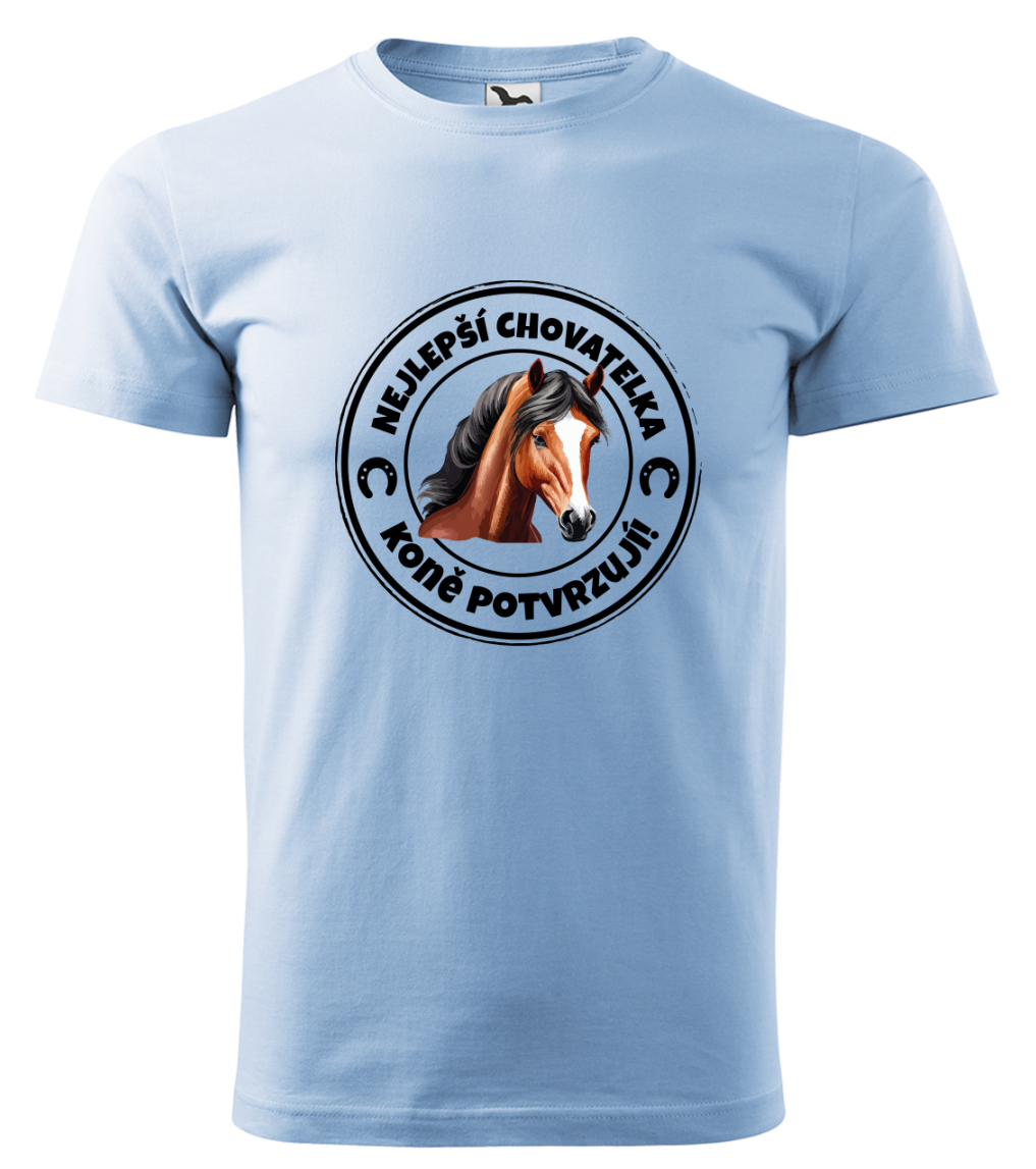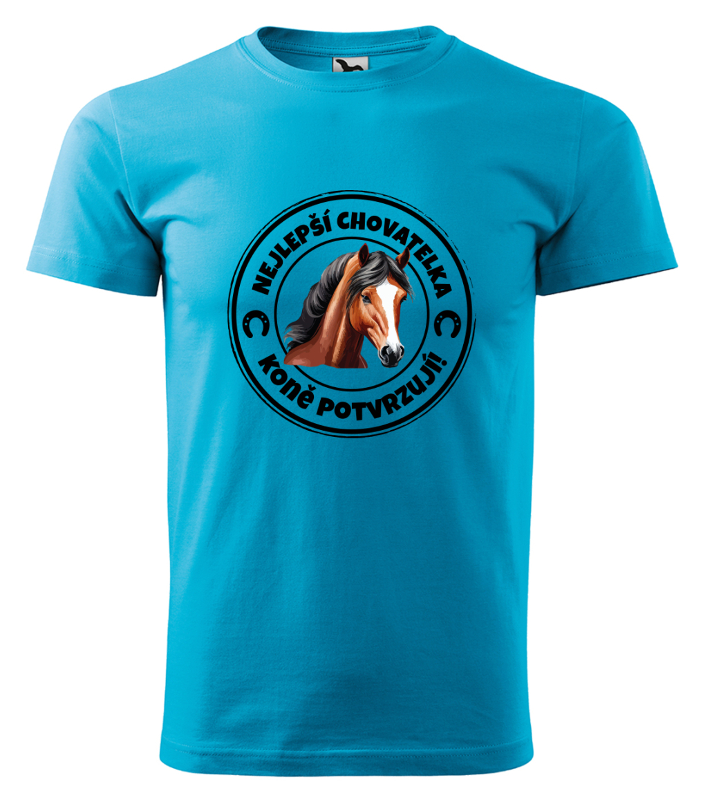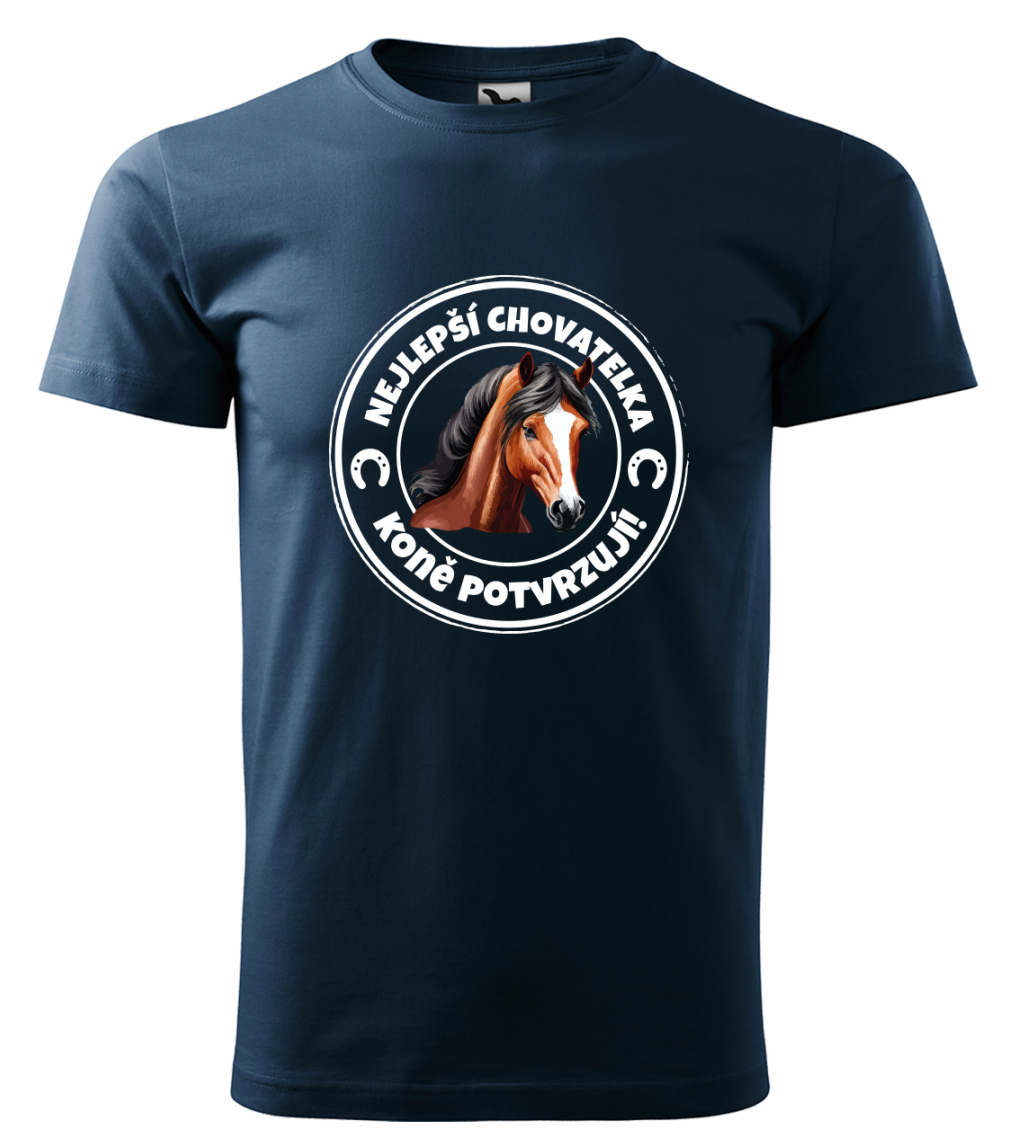 Hledáte dárek pro malou milovnici koní? Pro dívku, která se úžasně stará o koně? Máme pro vás dětské tričko s koněm a nápisem "Nejlepší chovatelka - koně potvrzují!". Nejlepší kousek oblečení, které potřebuje v šatníku každá malá koňařka. Tričko s koněm je vyrobené z kvalitní 100% bavlny vyšší gramáže a má moderní volnější střih - díky tomu je opravdu pohodlné při nošení. Tričko pro milovnici koní vám nabízíme k výběru z mnoha barevných variant triček - světlé i tmavé odstíny, pestré i přírodní tóny. Výběr je jen na vás. Také si u nás můžete vybrat z široké škály dětských velikostí. Vtipné tričko s koněm má kvalitní potisk, nepoužíváme levné nažehlovací samolepky, ale tvoříme opravdový potisk, který je přímo na textilu trička. Nahlédněte do spokojených recenzí a sami si ověřte kvalitu našich produktů a služeb.