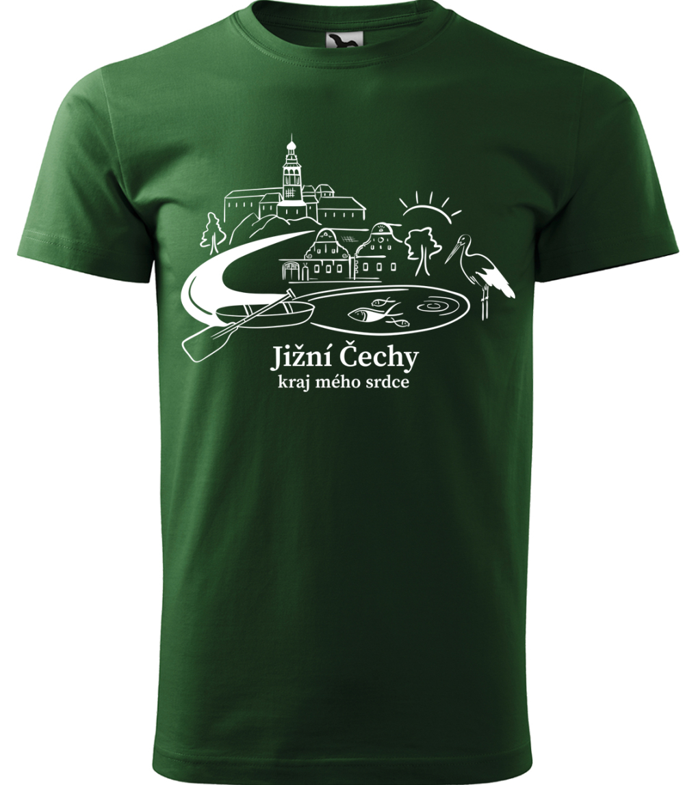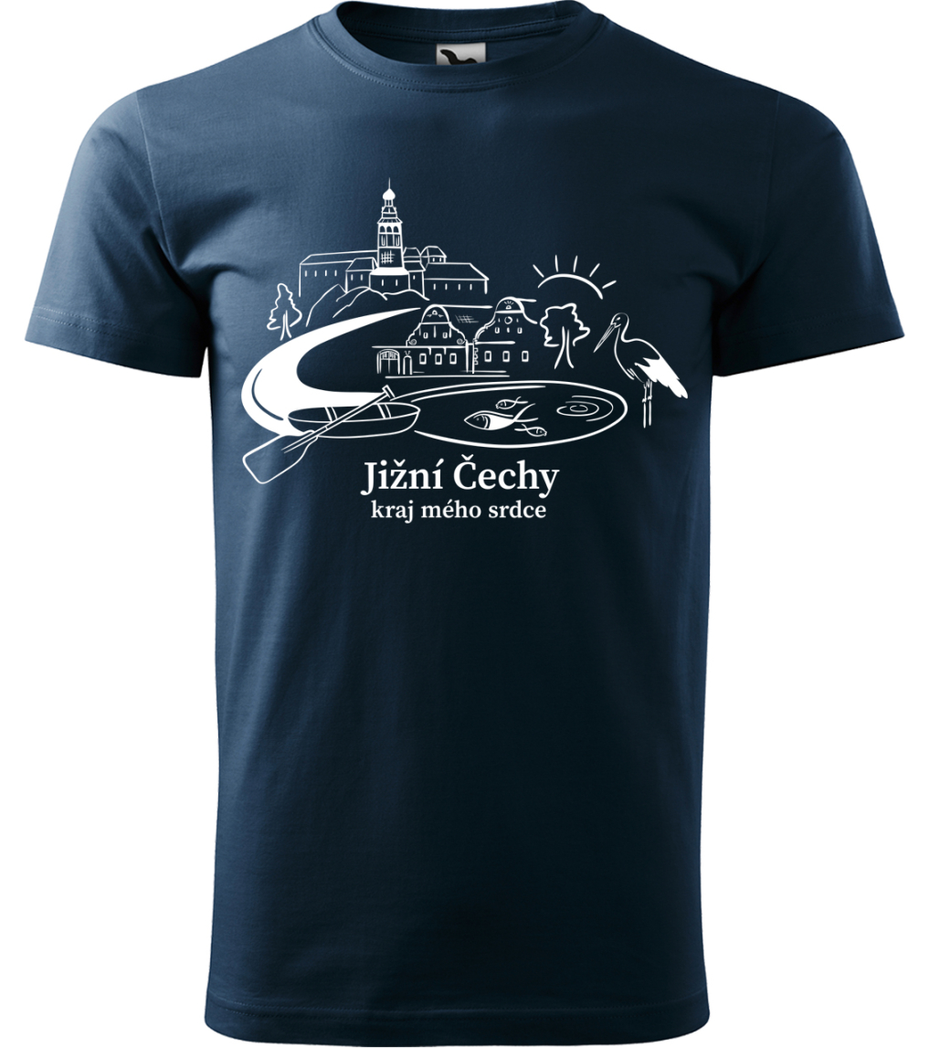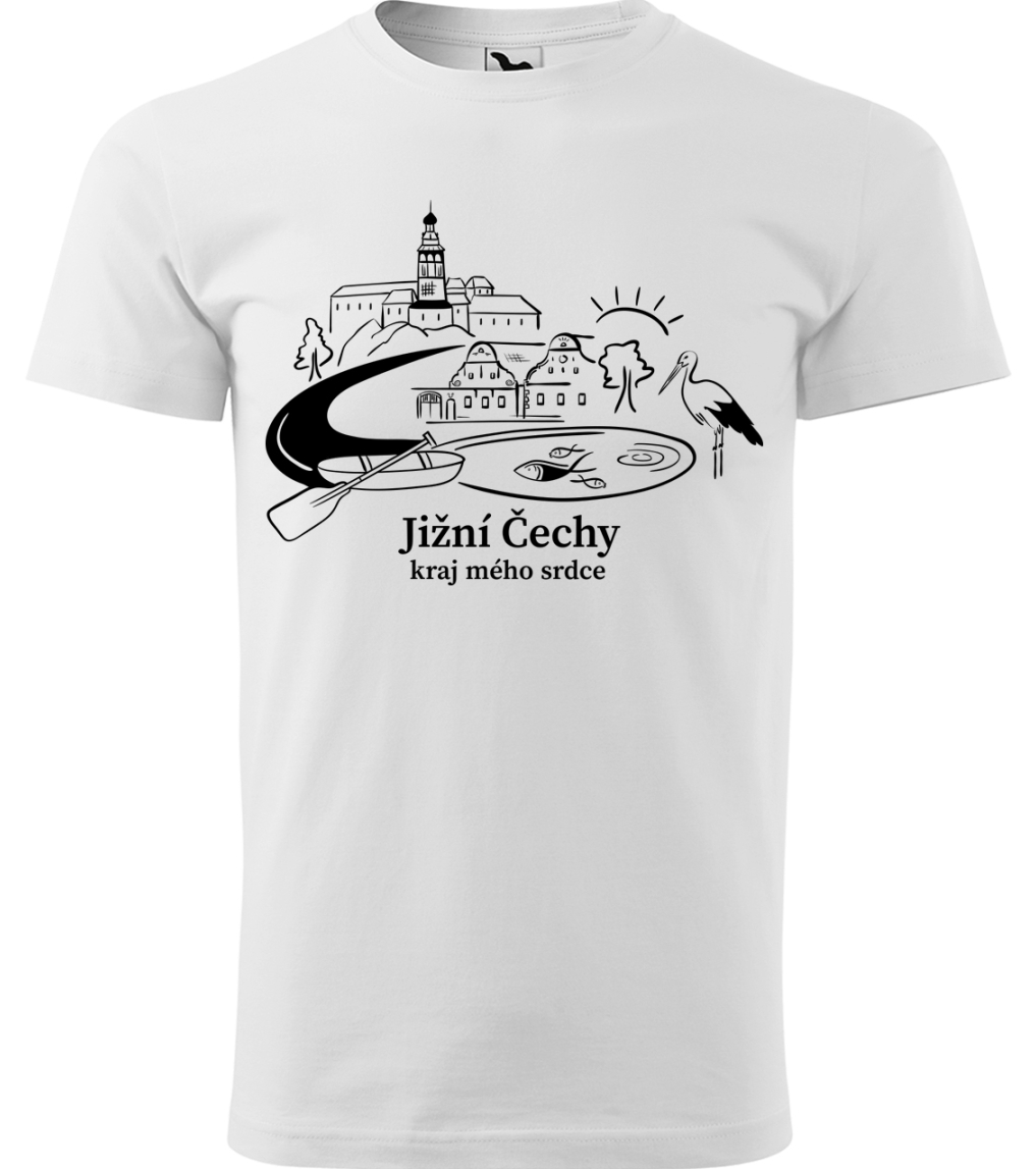 Máte rádi Jižní Čechy? Toto krásné tričko nesmí chybět ve vašem šatníku. Tričko pro hrdé rodáky, turisty a chalupáře na kterém nechybí Český Krumlov, jihočeské rybníky, řeka Vltava, čáp a jiné symboly je vyrobené z kvalitní 100% bavlny. Chcete tričko bez nápisu "kraj mého srdce"? Není problém. Napište to do poznámky.
