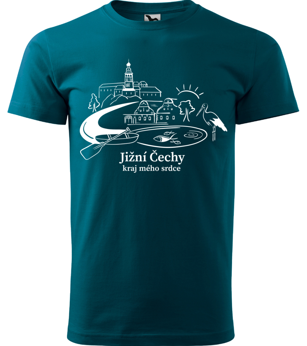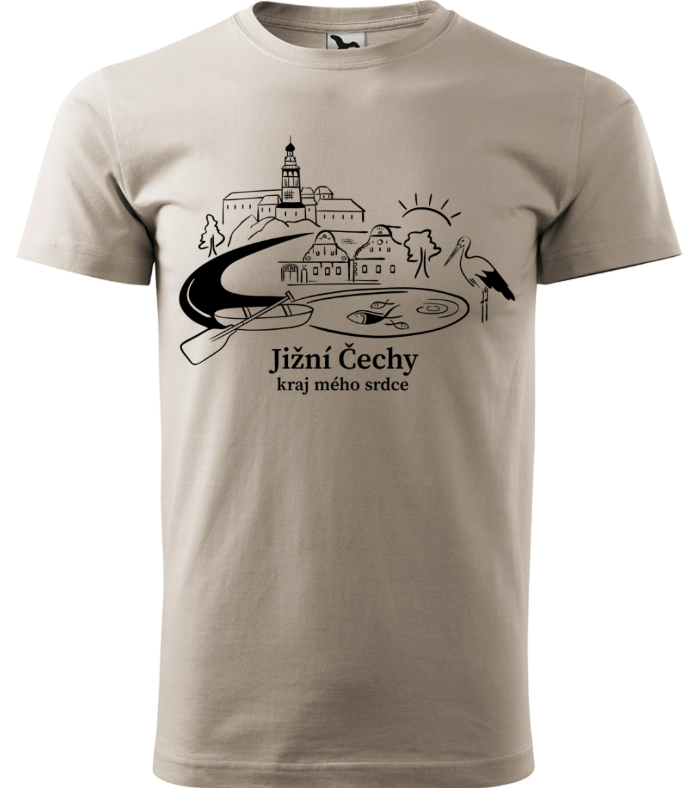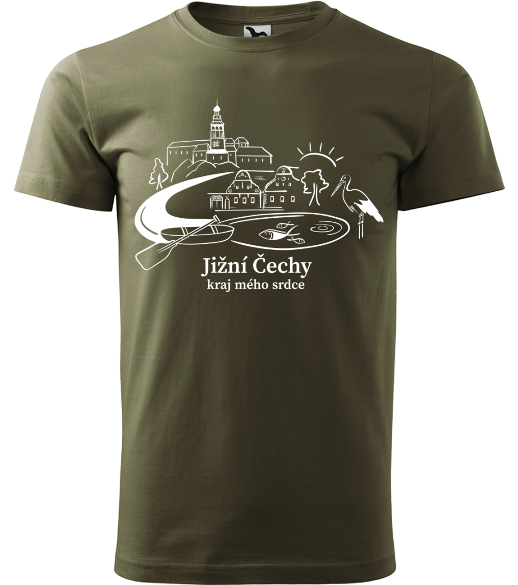 Máte rádi Jižní Čechy? Toto krásné tričko nesmí chybět ve vašem šatníku. Tričko pro hrdé rodáky, turisty a chalupáře na kterém nechybí Český Krumlov, jihočeské rybníky, řeka Vltava, čáp a jiné symboly je vyrobené z kvalitní 100% bavlny. Chcete tričko bez nápisu "kraj mého srdce"? Není problém. Napište to do poznámky.