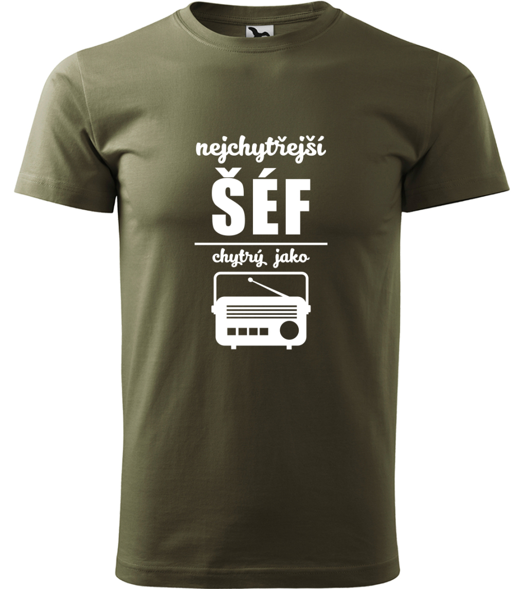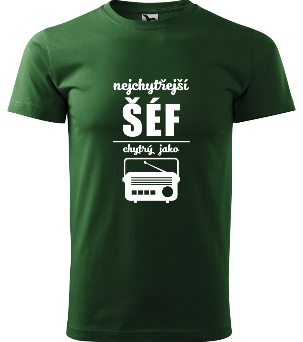 Tričko pro šéfa Tričko pro šéfa s vtipným motivem "Nejchytřejší šéf - chytrý jako rádio" potěší všechny nejchytřejší a hlavně nejvtipnější šéfy. Vtipný dárek pro šéfa, který pobaví, ale zároveň má praktickou funkci. Pokud máte v práci veselého šéfa, který si potrpí na srandičky - pořiďte mu kvalitní tričko ze 100% bavlny vyšší gramáže. Tričko pro šéfa má kvalitní potisk, který tvoříme pomocí nejmodernější tiskové technologie. Tričko má moderní volnější střih a je pohodlné. Blíží se šéfovi narozeniny a vy hledáte vtipný dárek? Nahlédněte do naší široké nabídky motivů pro šéfy - nabízíme vtipné, stylové i personalizované motivy. Dárek pro šéfa k narozeninám - vyberte si z velikostí od S až po 4XL a z barevných variant textilu. Tip na dárek pro šéfa na rozloučenou.