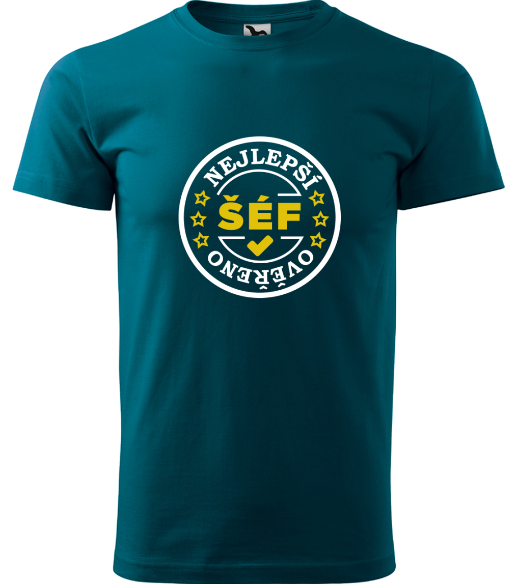Tričko pro šéfa Hledáte originální dárek pro šéfa? Láhev alkoholu nebo bonboniéra je klasika, ale co takhle tričko s osobitým motivem, kterým mu vyjádříte sympatie a poděkování? Tričko nejlepší šéf ocení všichni muži, kterých si jejich zaměstnanci patřičně váží. Tričko pro šéfa s motivem "Nejlepší šéf - ověřeno" je vyrobené z kvalitní 100% bavlny a má kvalitní potisk, který tvoříme pomocí nejmodernější tiskové technologie. Tričko pro šéfa má příjemný volnější střih a skvěle padne každé pánské postavě. Můžete si vybrat z barevných variant textilu a také z velikostí a to až do 4XL - u nás oblékneme každého šéfa. Tričko je dárek pro šéfa, který potěší a zároveň je to praktická věc, kterou obdarovaný muž opravdu dobře využije. Ideální dárek pro šéfa k narozeninám nebo na rozloučenou.