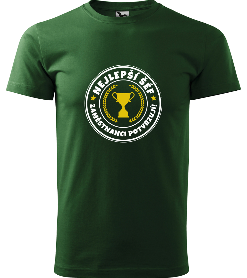 Tričko pro šéfa Tričko pro šéfa, který je pečlivě prověřený a otestovaný svými zaměstnanci. Dárek pro šéfa s motivem "Nejlepší šéf - zaměstnanci potvrzují" si můžete vybrat z barevných variant a velikostí a to od S až po 4XL. Tričko pro šéfa je vyrobené ze 100% kvalitní bavlny - má vyšší gramáž textilu a příjemný volnější střih. Tričko nejlepší šéf opravdu potěší a zároveň je to praktická věc, kterou šéf dobře využije. Nejlepší outfit, který v šatníku potřebuje každý nejlepší šéf. Tričko je osobitý dárek pro šéfa k narozeninám, k Vánocům nebo na rozloučenou. Tričko má kvalitní a odolný potisk, který tvoříme pomocí nejmodernější tiskový technologie. Nahlédněte do výborných recenzí našich zákazníků, kteří už naše trička spokojeně nosí.