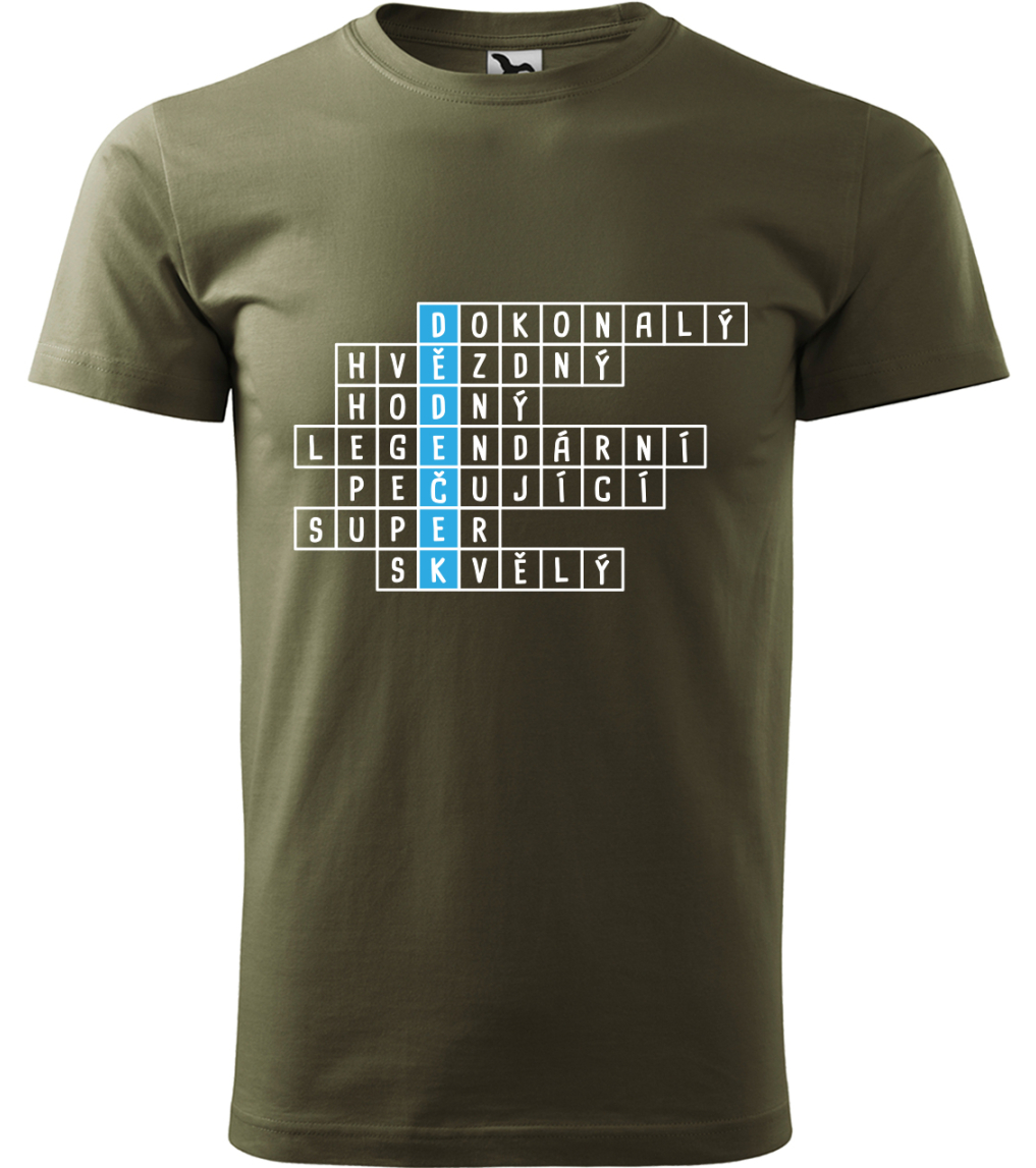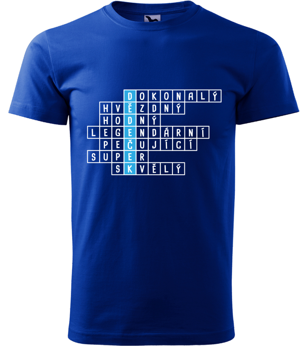 Tričko s křížovkou Pánské tričko s křížovkou je skvělý tip na dárek pro dědu. "Dokonalý, hvězdný, legendární,.." a další milá slova v křížovce vytvoří tajenku, ve které je slovo "dědeček". Toto 100% bavlněné tričko s kvalitním potiskem potěší i vašeho dědu. Tričko si můžete vybrat z velikostí od S až po 4XL a z mnoha barevných variant. Tričko pro dědu má vyšší gramáž textilu a příjemný volnější střih, skvěle padne každému typu pánské postavy. Máte i vy dědu, který je vášnivý křížovkář? Udělejte dědečkovi radost k narozeninám nebo třeba k Vánocům. Tričko s milým potiskem je dárek, který nejen potěší, ale je i praktický. Garantujeme vám, že toto tričko se stane dědečkovo oblíbeným kouskem oblečení. Tričko pro křížovkáře má kvalitní potisk, který tvoříme nejmodernější tiskovou technologií.