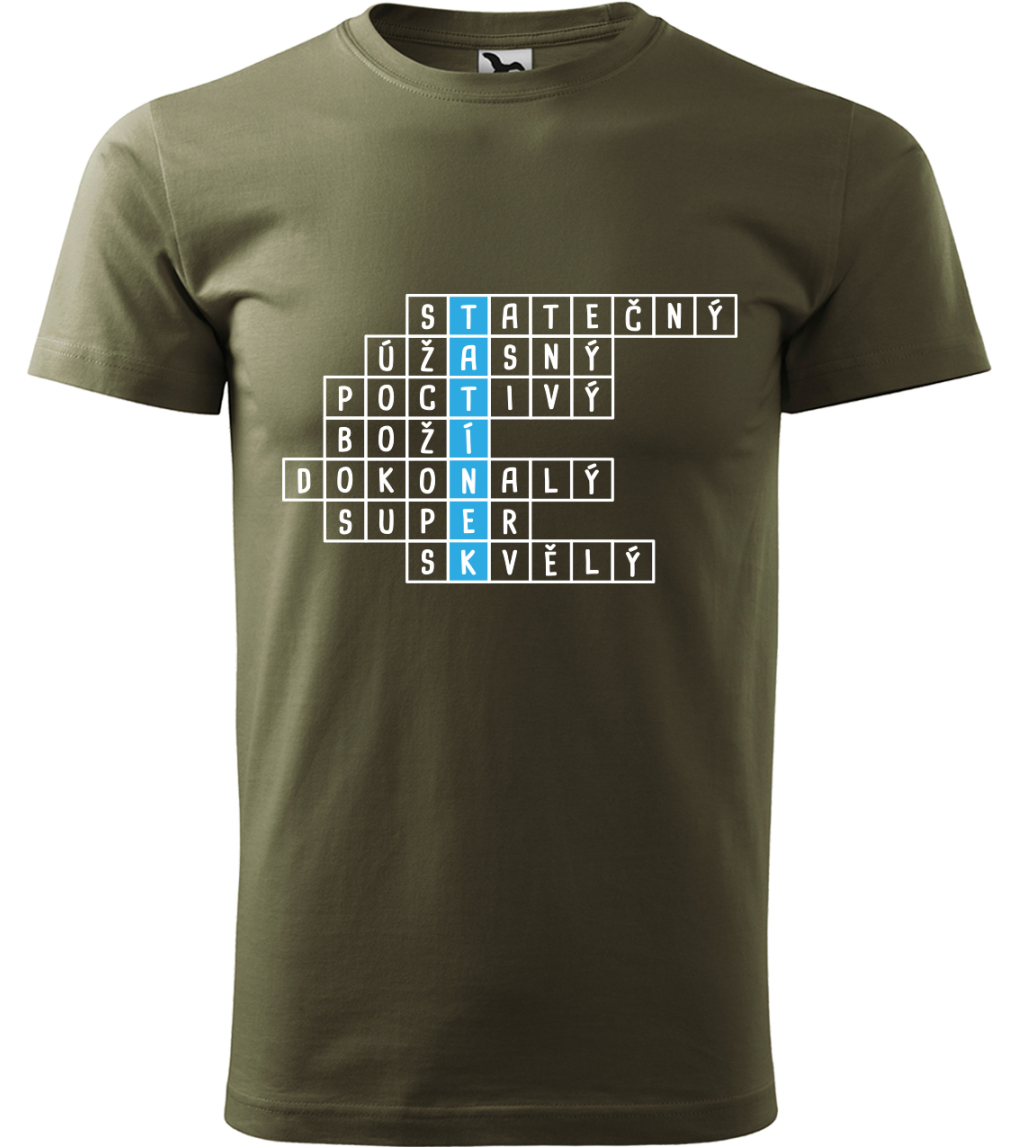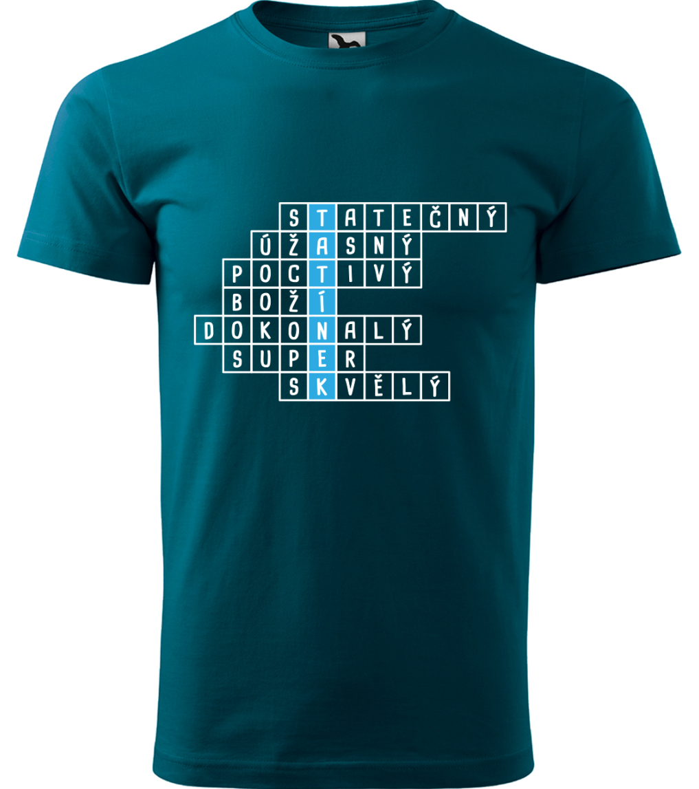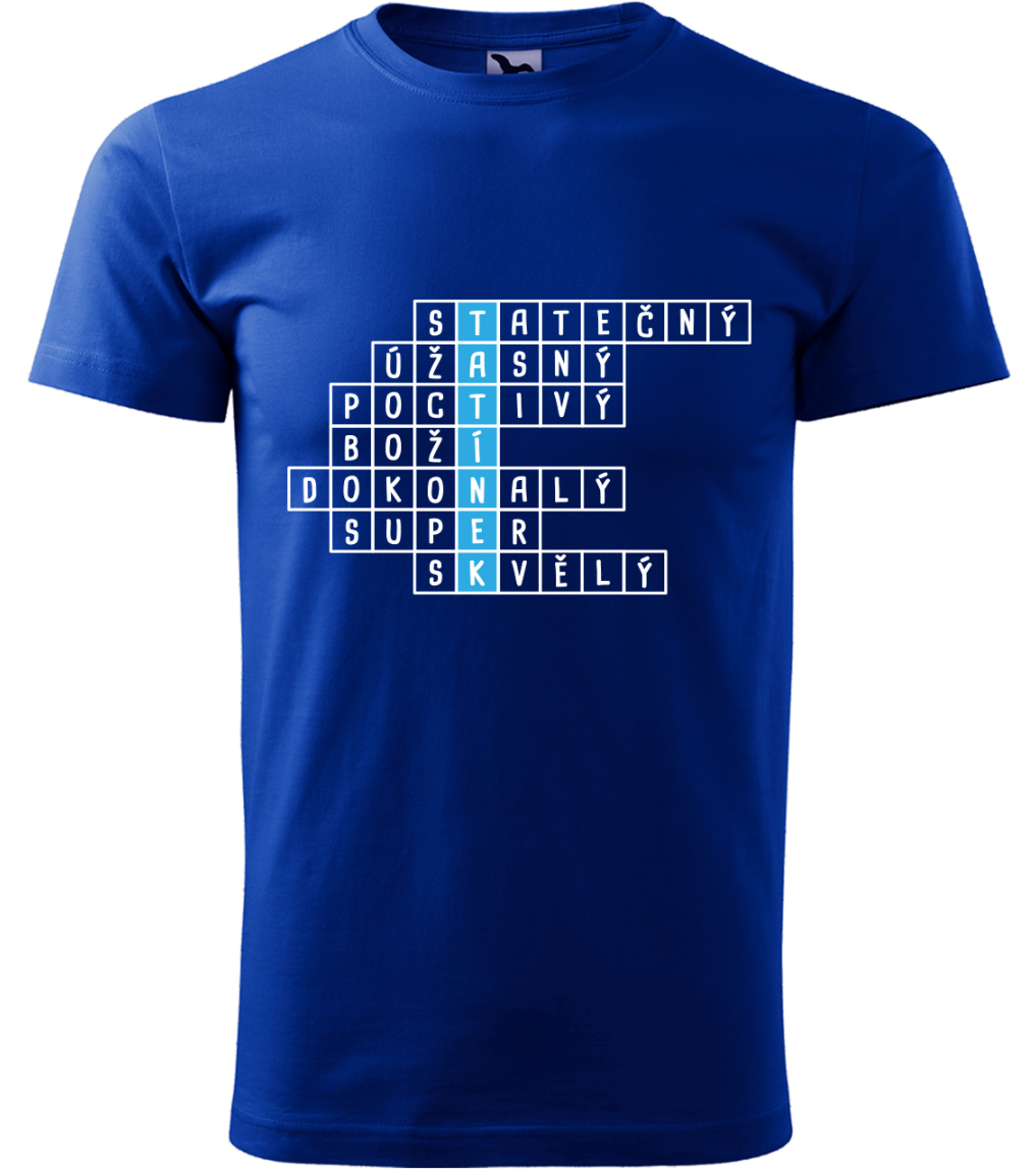 Tričko s křížovkou Pánské tričko s křížovkou je skvělý tip na dárek pro tátu. "Statečný, úžasný, dokonalý,.." a další milá slova v křížovce vytvoří tajenku, ve které je slovo "tatínek". Toto 100% bavlněné tričko s kvalitním potiskem potěší i vašeho tátu. Tričko si můžete vybrat z velikostí od S až po 4XL a z mnoha barevných variant. Tričko protátu má vyšší gramáž textilu a příjemný volnější střih, skvěle padne každému typu pánské postavy. Máte i vy tátu, který je vášnivý křížovkář? Udělejte tatínkovi radost k narozeninám nebo třeba k Vánocům. Tričko s milým potiskem je dárek, který nejen potěší, ale je i praktický. Garantujeme vám, že toto tričko se stane tatínkovo oblíbeným kouskem oblečení. Tričko pro křížovkáře má kvalitní potisk, který tvoříme nejmodernější tiskovou technologií.