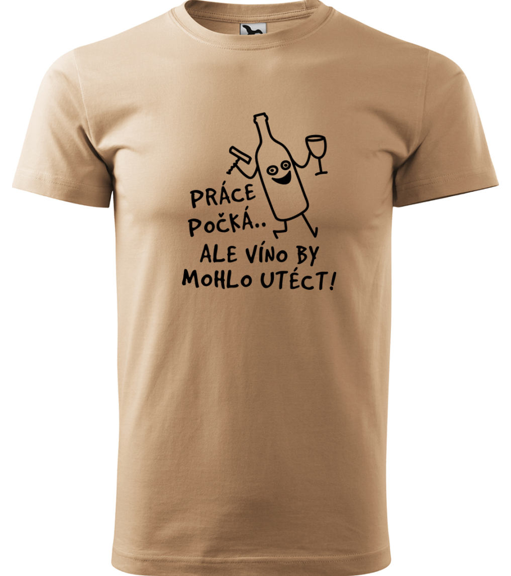 Tričko s vínem Jedinečný dárek pro milovníka vína je tady. Tričko s vínem a motivem "Práce počká, ale víno by mohlo utéct" nutně potřebuje každý milovník vína nebo vinař. Cool tričko s vínem je vyrobené z kvalitní 100% bavlny vyšší gramáže. Pánské tričko s vínem oceníte pro jeho příjemnost při nošení - má moderní volnější střih a je tak velmi pohodlné. Nabízíme vám výběr z pánských velikostí od S až po 4XL. Také si u nás můžete vybrat z široké palety barevných variant textilu. Tip na originální dárek pro milovníka vína - potěšte třeba manžela, tatínka nebo kamaráda, který si rád dopřeje vínečko nebo je vinař. Všechna naše trička s vínem mají prvotřídní potisk - nepoužíváme levné nažehlovací samolepky, ale nejmodernější tiskovou technologii, která zaručuje kvalitu a odolnost potisku.