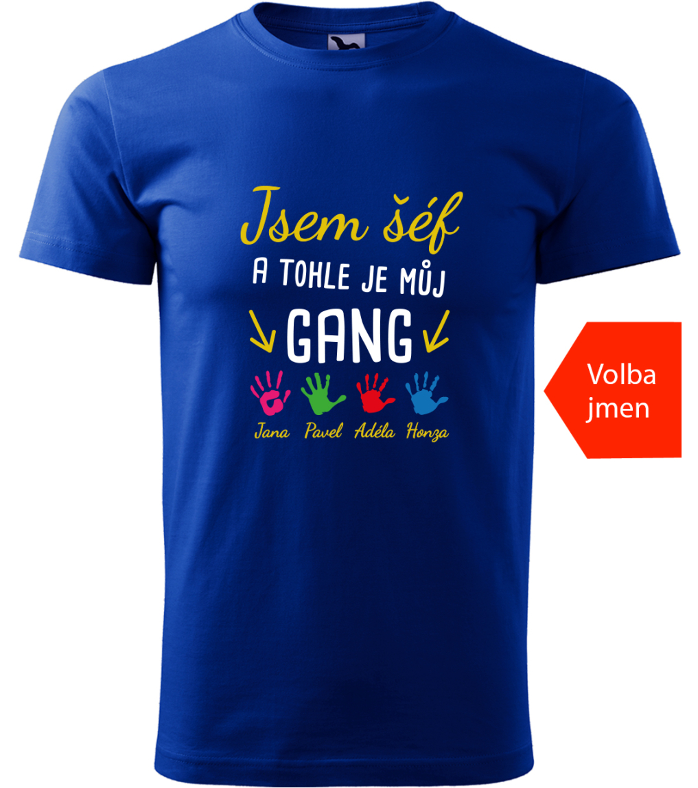 Tričko pro šéfa s vtipným a zároveň osobitým motivem potěší každého cool šéfa. Hledáte super tip na dárek pro šéfa? Pořiďte mu tričko ze 100% kvalitní bavlny vyšší gramáže. Každý správný šéf si v práci umí vytvořit svůj vlastní oddaný gang, jehož je vůdcem. Potěšte vašeho šéfa originálním dárkem, který se stane jeho nejoblíbenějším pracovním outfitem. Tričko pro šéfa s vlastními jmény zaměstnanců, kteří tričko darují je osobitý a zároveň praktický dárek pro šéfa. Tričko pro šéfa i můžete vybrat z velikostí od S až po 4XL a z barevných variant textilu. Tričko má příjemný volnější střih a skvěle padne každé pánské postavě. Nejlepší kousek oblečení, který v šatníku nutně potřebuje každý nejlepší šéf. Na tričko vytiskneme jména zaměstnanců, které nám napíšete do poznámky k objednávce.