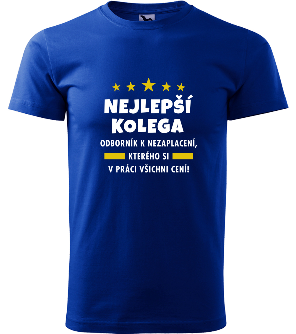 Vtipné tričko do práce Hledáte jedinečný a osobitý dárek pro kolegu, kterým ho překvapíte? Máme pro vás originální tričko do práce s motivem "Nejlepší kolega - Odborník k nezaplacení, kterého si všichni v práci cení". Tričko pro kolegu je vyrobené z kvalitní 100% bavlny od předního evropského výrobce textilu. Tričko do práce vám nabízíme ve velikostech od S až po 4XL. také si u nás můžete vybrat z barevných variant. Nejlepší dárek pro kolegu, který ho opravdu potěší a stane se jeho oblíbeným tričkem do práce. Tričko do práce má příjemný volnější střih a vyšší gramáž textilu - díky domu je opravdu pohodlné. Všechna naše trička mají kvalitní a odolný potisk.