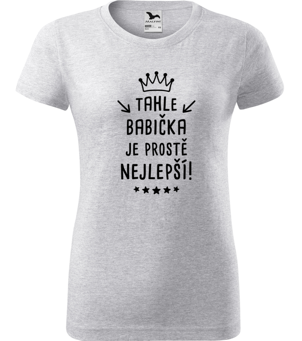 Tričko pro babičku, která je prostě nejlepší. Být ta nejlepší babička - to je ta nejlepší módní značka, noste ji hrdě na tričku a ukažte všem, kdo doopravdy jste. Kvalitní bavlněné tričko, ve kterém budete za hvězdu.