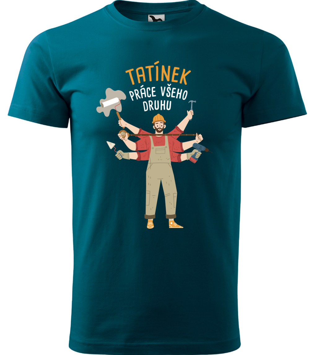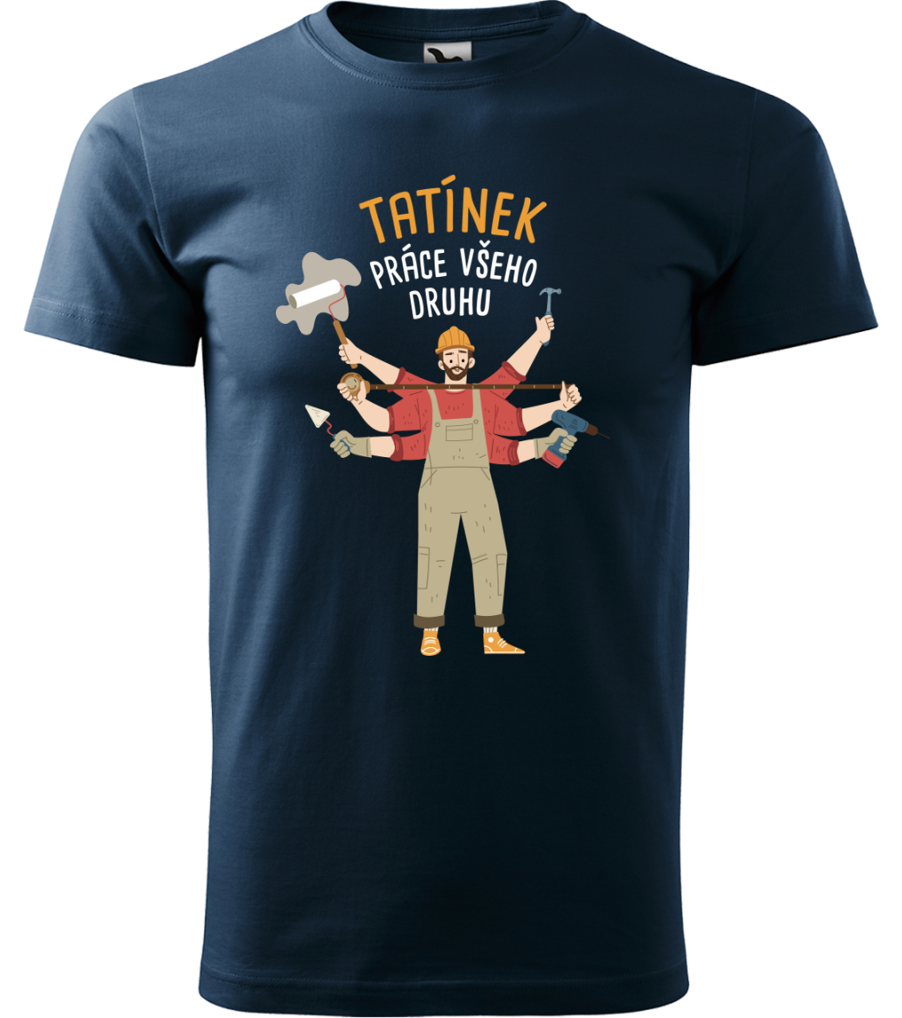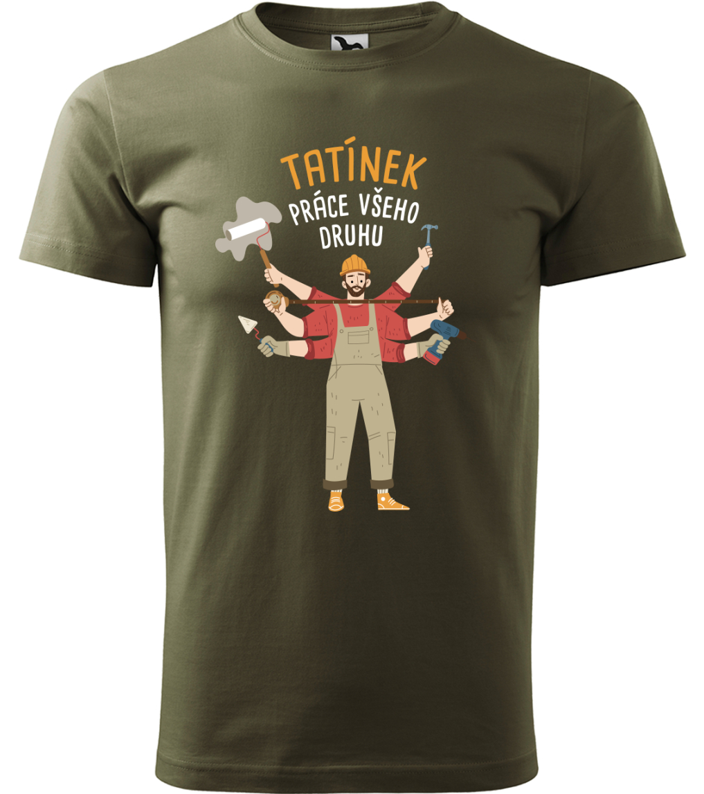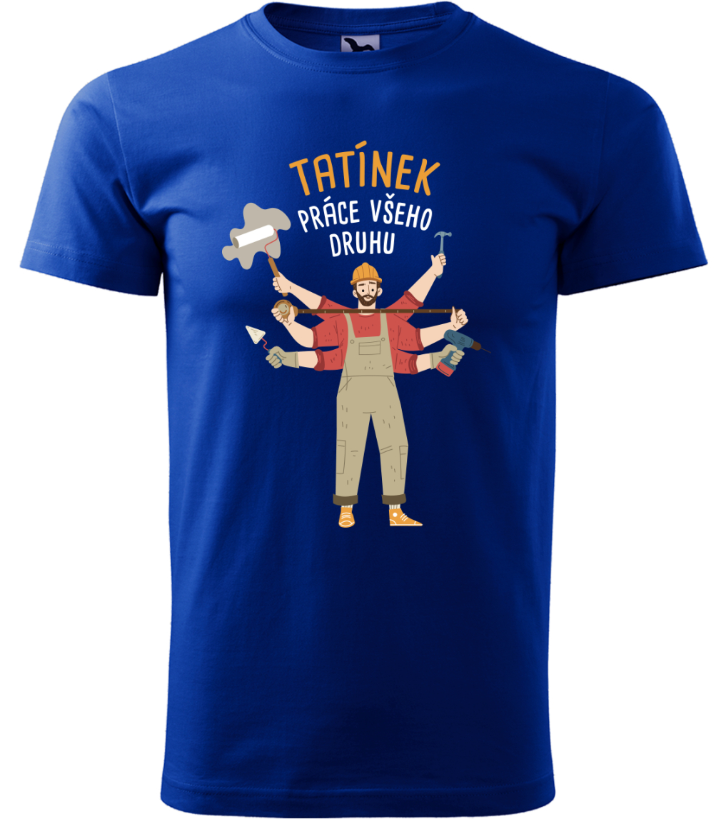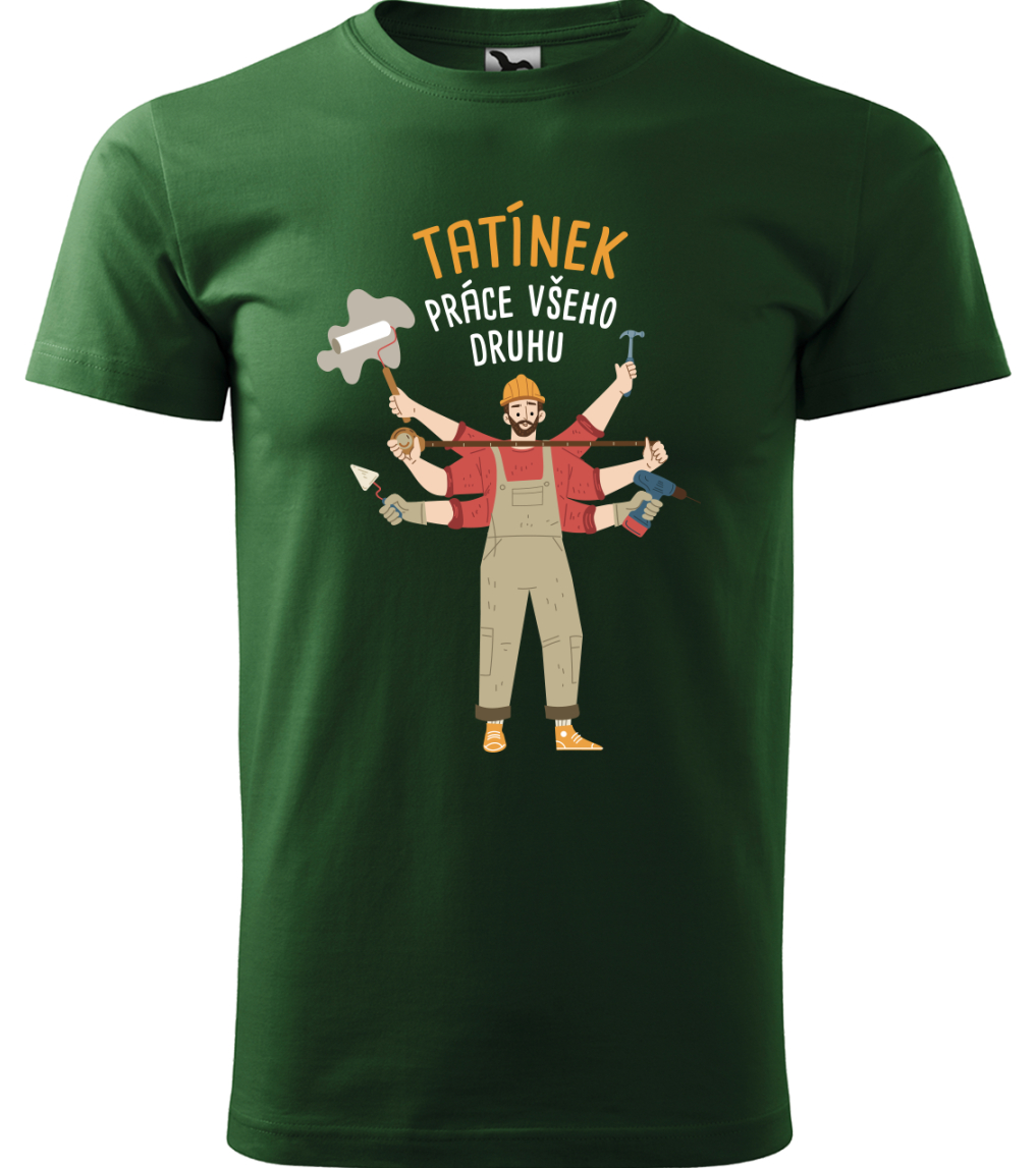 Tričko pro tátu Hledáte dárek pro tátu ke dni otců, k narozeninám, k Vánocům nebo jen tak? Kupte mu toto vtipné tričko s nápisem "Tatínek práce všeho druhu". Tričko pro tátu vášnivého kutila, opraváře nebo šikovného stavitele. Tričko je vyrobené ze 100% bavlny a nabízíme ho v několika barevných provedeních až do velikosti 4XL. Tričko na přání úhledně zabalíme do dárkové krabičky a mašlí a krásný dárek pro tátu je na světě.