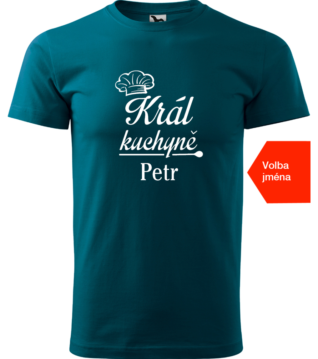 Tričko pro kuchaře s textem "král kuchyně" a vlastním jménem má moderní volnější střih a je vyrobené ze 100% kvalitní bavlny vyšší gramáže. Tričko na vaření si můžete vybrat z mnoha velikostí - nabízíme velikosti od S až po 4XL. Dárek pro muže kuchaře, který si zamiluje každý super kuchař. Máte doma muže, který rád a dobře vaří? Muže, který se v kuchyni cítí jako král? Toto originální tričko s nápisem "Král kuchyně" a jeho jménem ho určitě potěší. Tričko na vaření se jménem je oblíbený dárek k narozeninám nebo k Vánocům. Tričko, které v běžném obchodě nekoupíte. Tričko na vaření má kvalitní potisk, který zhotovujeme pomocí nejmodernější tiskové technologie. Vybírejte z mnoha originálních motivů pro domácí i profesionální kuchaře.