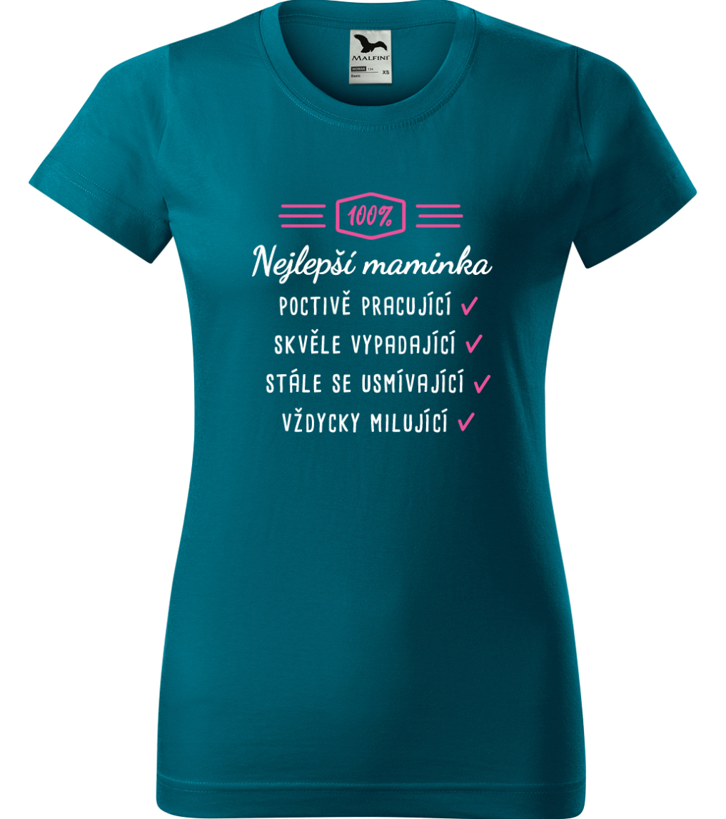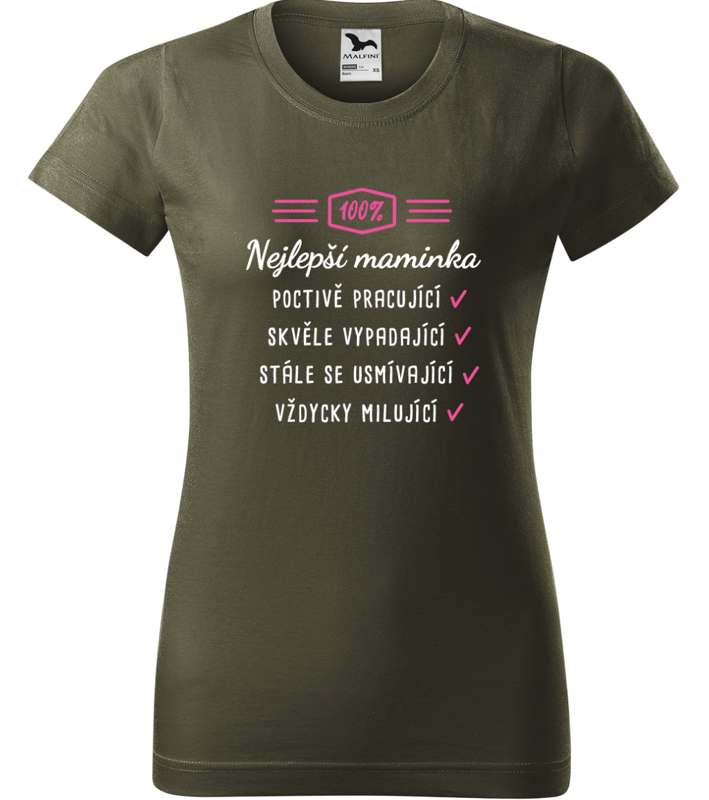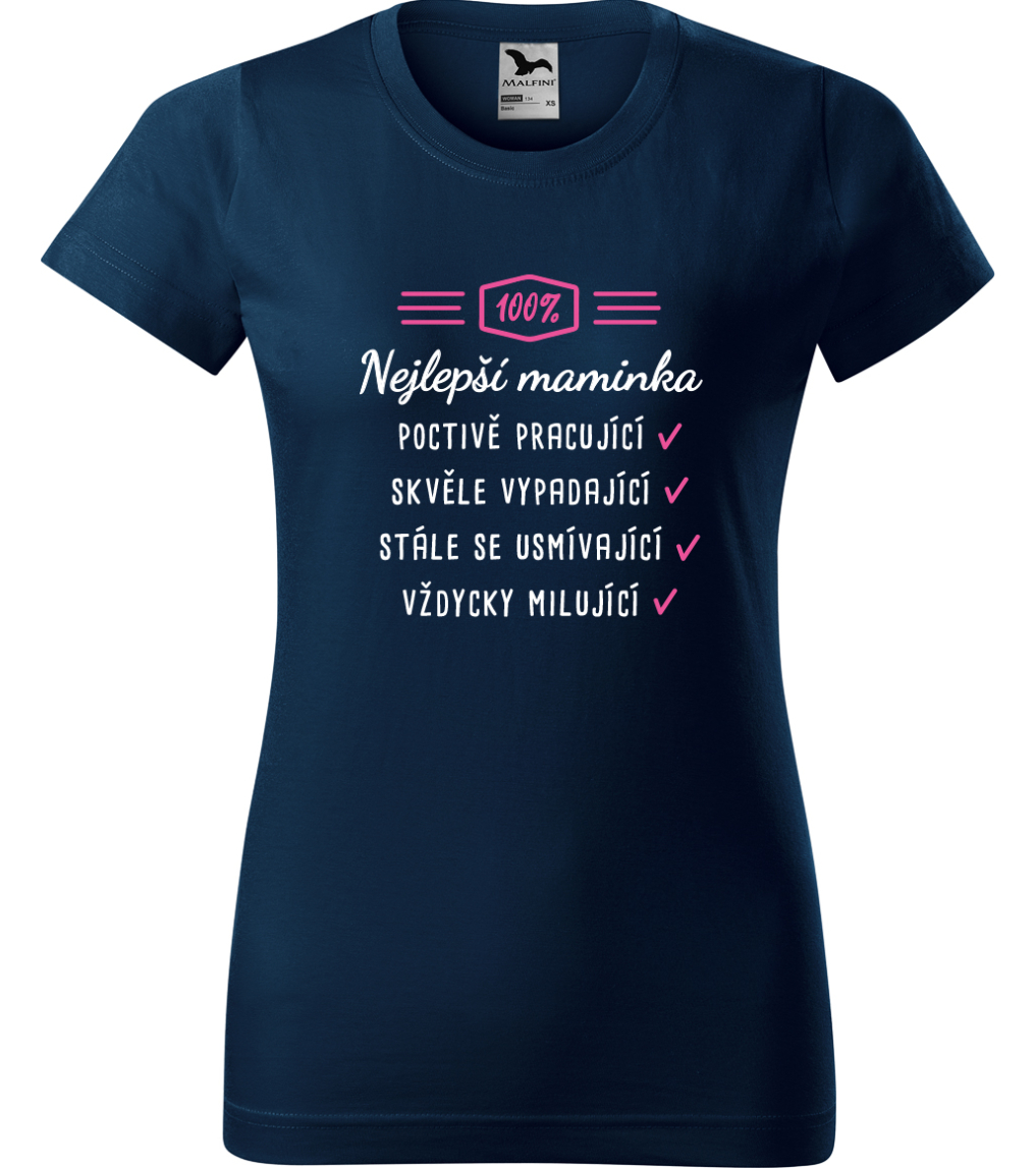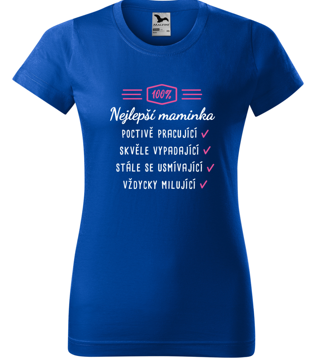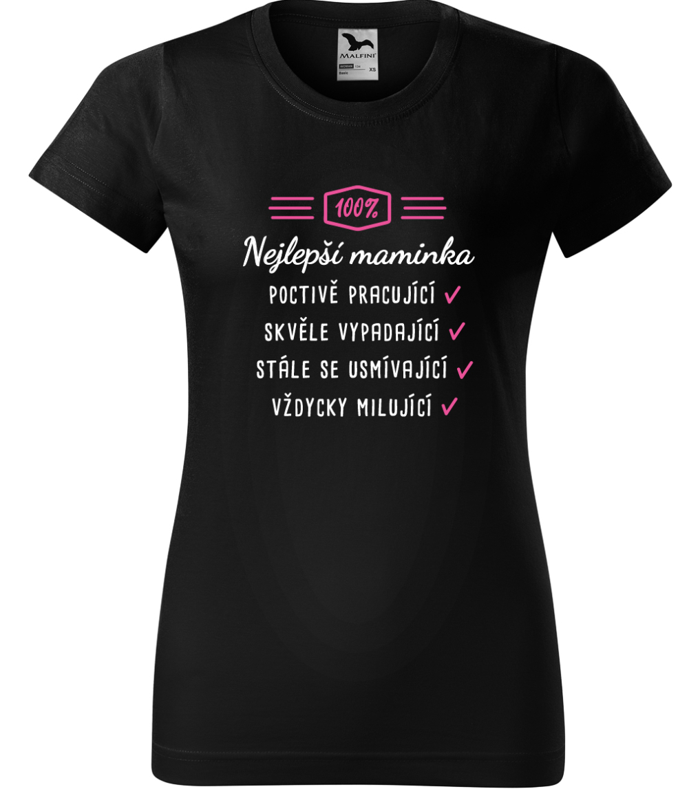 Originální tričko pro maminku, ve kterém zazáří každá stoprocentní maminka. Dárek pro maminku, který potěší a zároveň je praktický. Tričko je vyrobené z kvalitní 100% bavlny a nabízíme ho ve velikostech od S až po 2XL (černé tričko až 3XL). Tričko pro maminku má moderní vypasovaný střih, vyšší gramáž textilu a dobře sedí každé postavě. Hledáte opravdu originální tip na dárek pro maminku, kterým vykouzlíte úsměv na tváři? Pořiďte jí stylové tričko s jedinečným potiskem, které jinde nekoupíte. Nabízíme výběr z několika barevných variant triček. Všechna trička mají vysokou kvalitu a odolnost potisku. Víte, jak vypadá 100% maminka? Je poctivě pracující, skvěle vypadající, stále se usmívající a samozřejmě vždycky milující. Toto tričko se stane oblíbeným kouskem oblečení každé super ženy se srdcem na pravém místě.