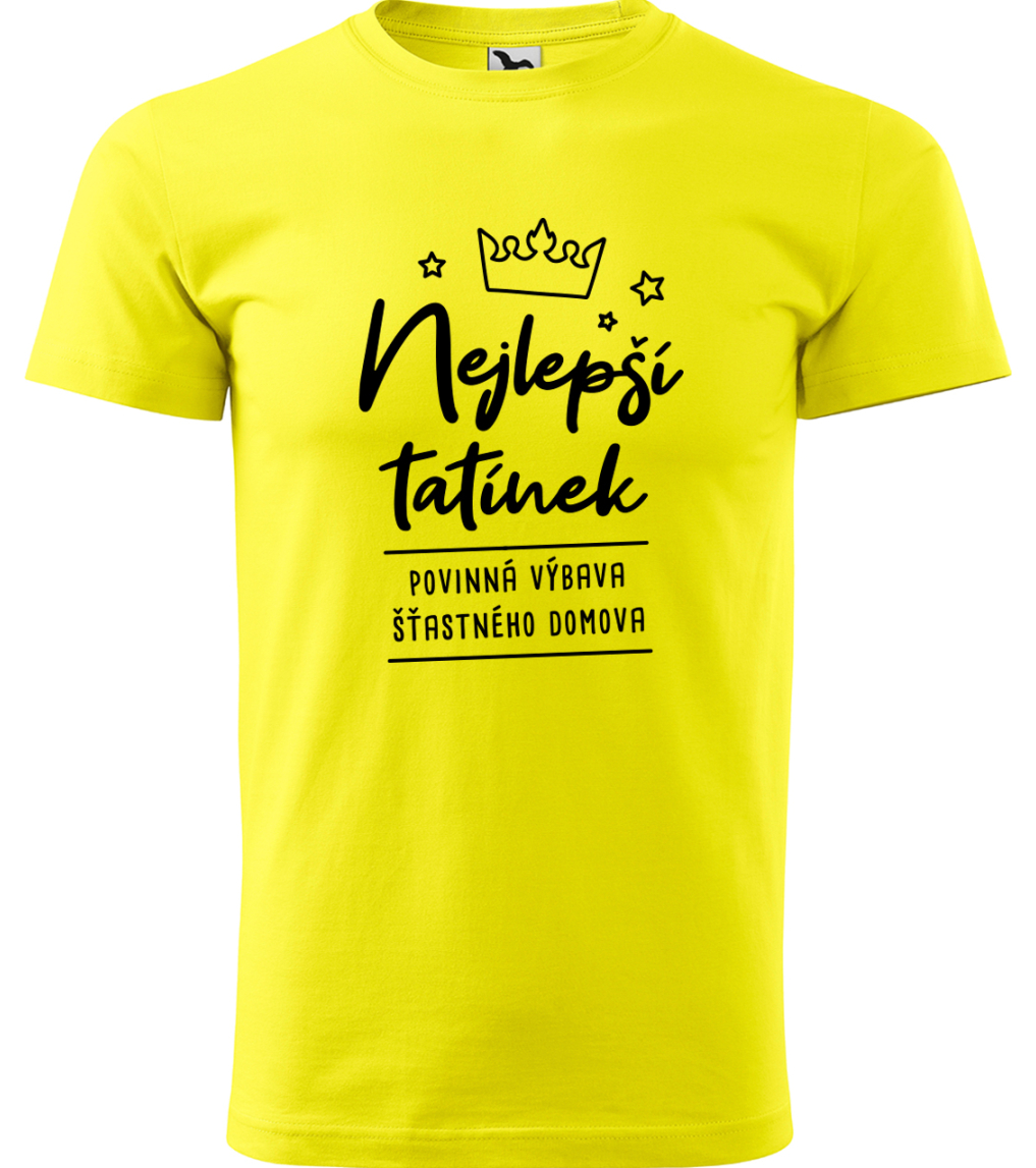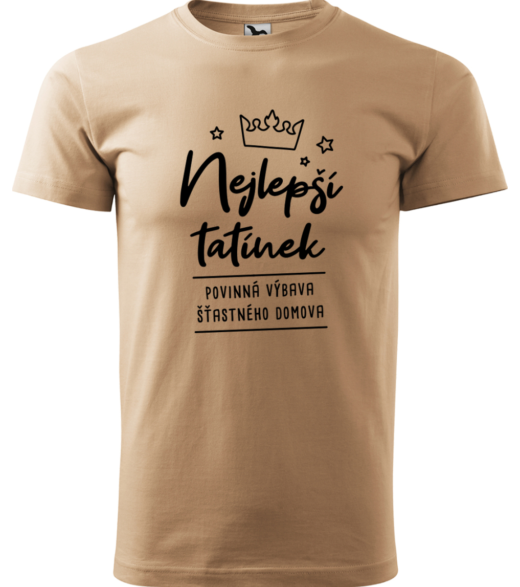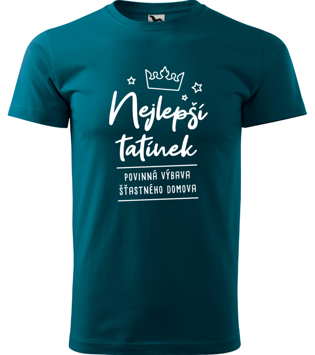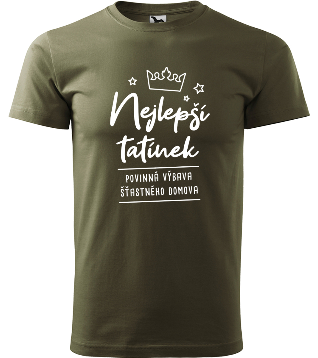 Tričko pro tátu s humorným potiskem "Nejlepší tatínek - povinná výbava šťastného domova" je určené všem úžasným tatínkům, které můžete tričkem obdarovat třeba k narozeninám nebo ke Dni otců.