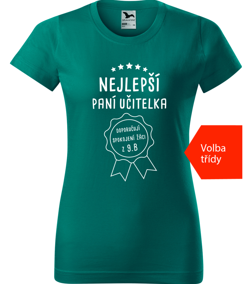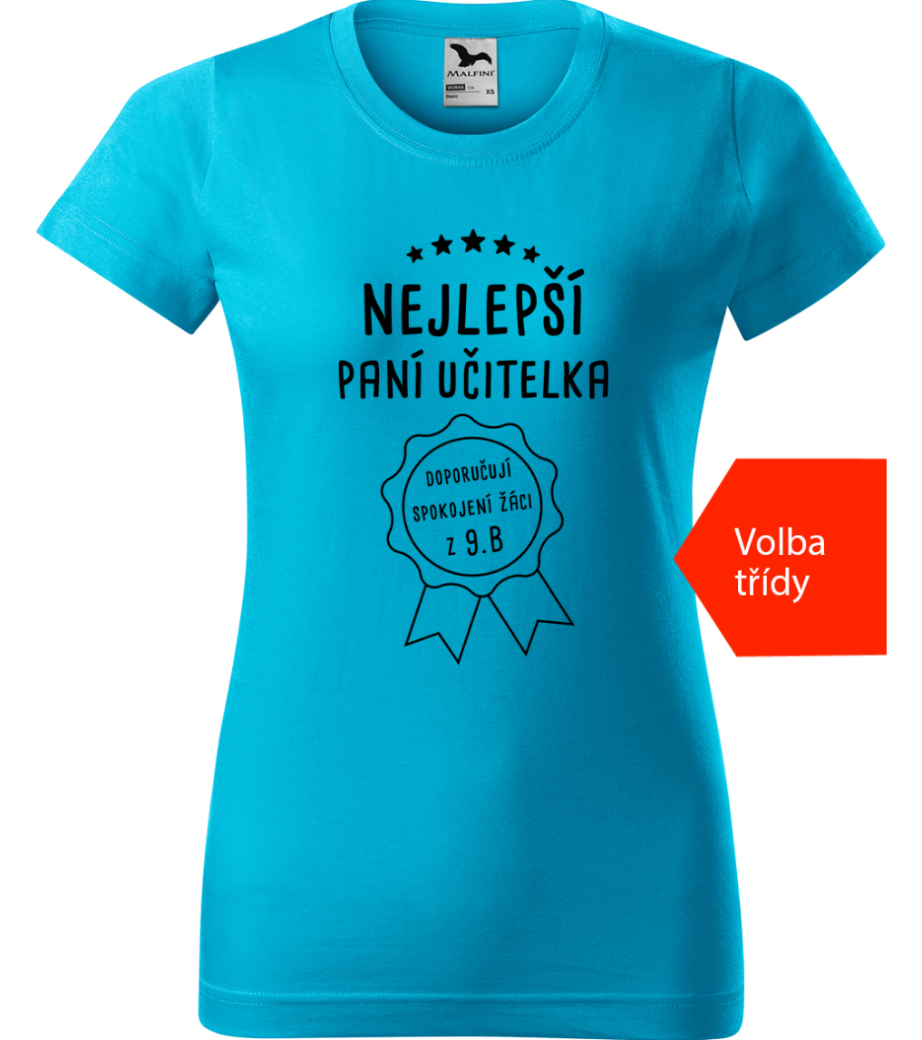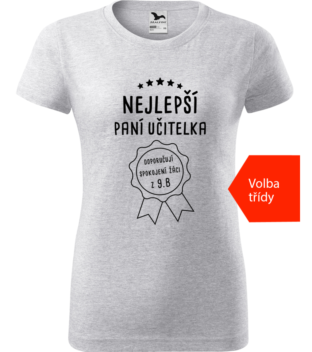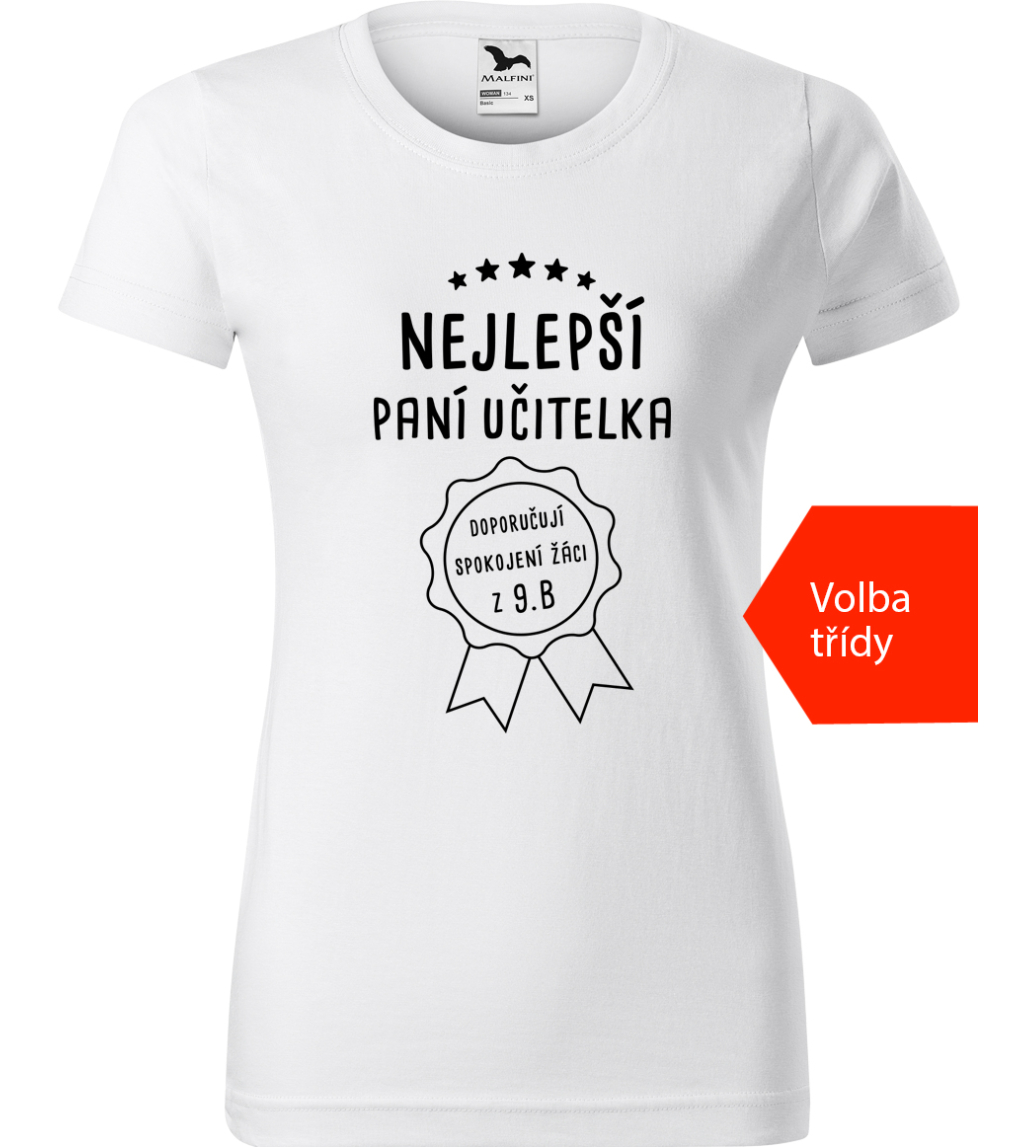 Tip na dárek pro paní učitelku, který si oblíbí každá správná pedagožka. Tričko pro učitelku je 100% bavlněné a nabízíme ho v pestré a široké nabídce barevných variant. Světlé, tmavé, pestré nebo přírodní odstíny? To vše máme v nabídce - je jen na vás, jakou barvu si vyberete. Hledáte originální dárek na rozloučenou pro paní učitelku? Pořiďte jí toto tričko s vlastním označením třídy, které se stane jejím oblíbeným kouskem oblečení, ve kterém na vás bude ráda vzpomínat. Tričko pro učitelku má vypasovaný střih, který dobře padne každé postavě - trička nabízíme ve velikostech od S až po 2XL (bílá a černá trička až 3XL). Osobitý dárek pro učitelku, který je zároveň praktický a který neuvadne :)