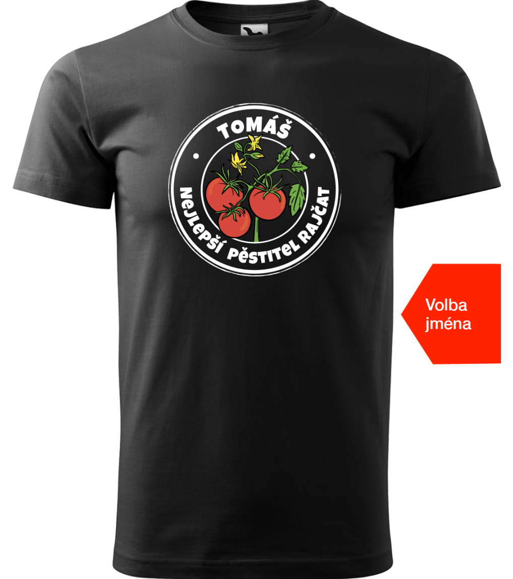 Tričko s obrázkem rajčat pro vášnivé pěstitele rajčat. Na tričko vytiskneme jméno zahradníka. Tričko s nápisem "Nejlepší pěstitel rajčat" je originální dárek pro muže, tatínka nebo dědu. Tričko je dokonalý domácí i zahradní outfit, ve kterém půjde pěstovaní rajčat pěkně od ruky. Tričko je vyrobené z kvalitní 100% bavlny. Udělejte obdarovanému radost a darujte mu originální zahradnické tričko. Dárek pro zahradníka, který je netradiční a který potěší. Objednejte dnes a již zítra můžete mít tričko doma.