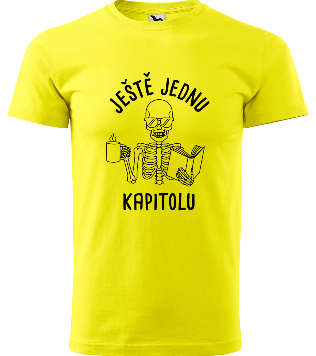 Tričko s knihou, vtipným obrázkem a nápisem "Ještě jednu kapitolu" je ten nejlepší outfit pro všechny milovníky knih a čtení. Hledáte dárek pro knihomola? Tímto 100% bavlněným tričkem potěšíte každého muže, který čte jednu knihu za druhou. Tričko pro knihomola má moderní volnější střih a vyšší gramáž textilu, díky tomu je příjemné a pohodlné na nošení. Tričko dobře využijete třeba do práce nebo na ven. V tomto tričku zazáříte, protože číst knihy je cool napříč generacemi. Vybrat si u nás můžete z mnoha krásných barevných variant triček a velikostí až do 4XL. Dárek pro milovníky čtení, se kterým nešlápnete vedle. Všechna naše trička mají prvotřídní potisk, který tvoříme pomocí nejmodernější tiskové technologie. Všichni vášnivý knihomolové to znají.. říkáte si "ještě jednu kapitolu", a pak další.. a další.. a další.