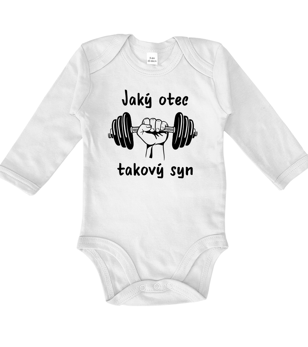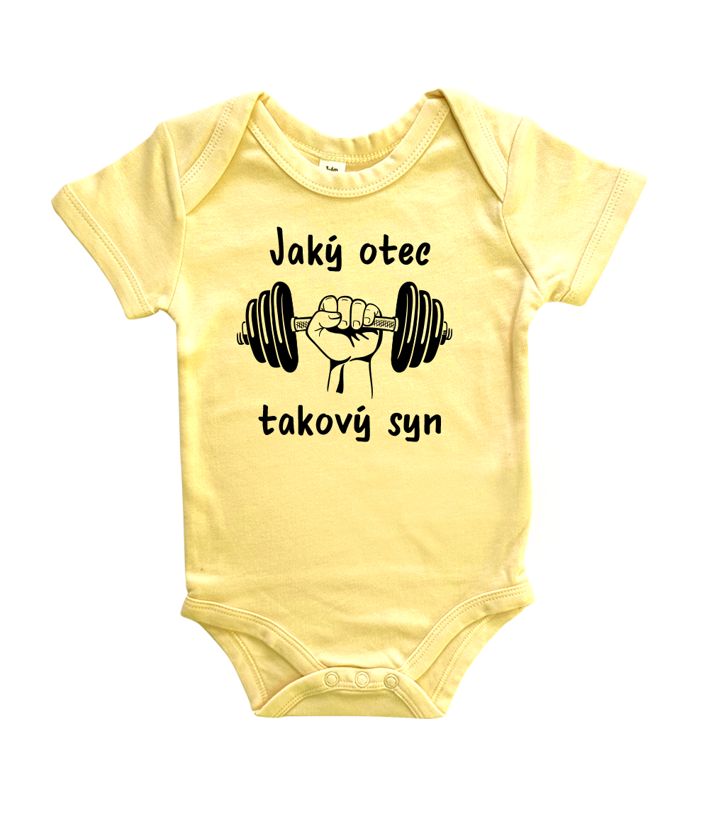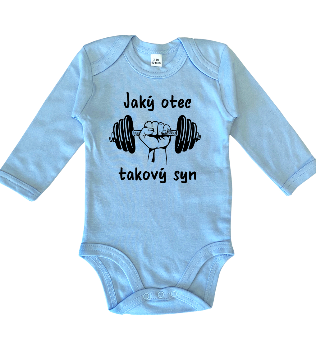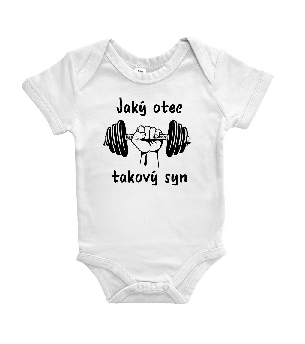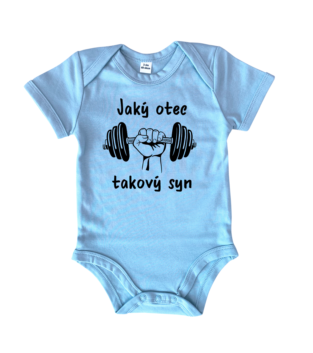 Hledáte vtipná body pro miminka? Zde si vyberete ta nejvtipnější. Dětské body s činkou a nápisem „Jaký otec, takový syn“ udělá radost hlavně tatínkům. Pokud máte dceru a chcete bodýčko s nápisem „Jaký otec, taková dcera“, napište požadavek do poznámky. Dětská body pro miminka jsou vyrobená z kvalitní 100% bavlny s certifikací nezávadnosti OEKO-TEX. Bodýčko nabízíme v několika barevných provedeních jak pro kluky tak pro holčičky s krátkým i dlouhým rukávem. Darujte ho i vy a vykouzlete tatínkovi i miminku úsměv na tváři.