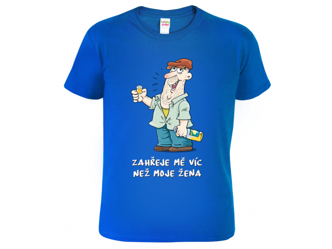 Když je venku sychravo a žena vás už nezahřeje, kupte si naše vtipné tričko, otevřete lahvinku a bude vám hej. Tričko s téměř dokonalou kresbou pijáka alkoholu nabízíme v široké škále barev až do velikosti 4XL (v černé a tmavě modré barvě). Vtipná trička z našeho eshopu jsou potištěna na kvalitní textil ze 100% bavlny a potištěna nejmodernější technologií. Tričko je potištěno přímo do vláken textilu, proto se potisk nesloupe a nepopraská. Pánské trička mají klasický, volnější střih. Doporučujeme důkladně poměřit s naší velikostní tabulkou. Vtipná trička jsou oblíbený dárek k narozeninám nebo k Vánocům. Darujte ho i vy. Rychlé doručení a bezproblémová výměna je u nás samozřejmostí. výborné recenze zákazníků jsou toho důkazem.