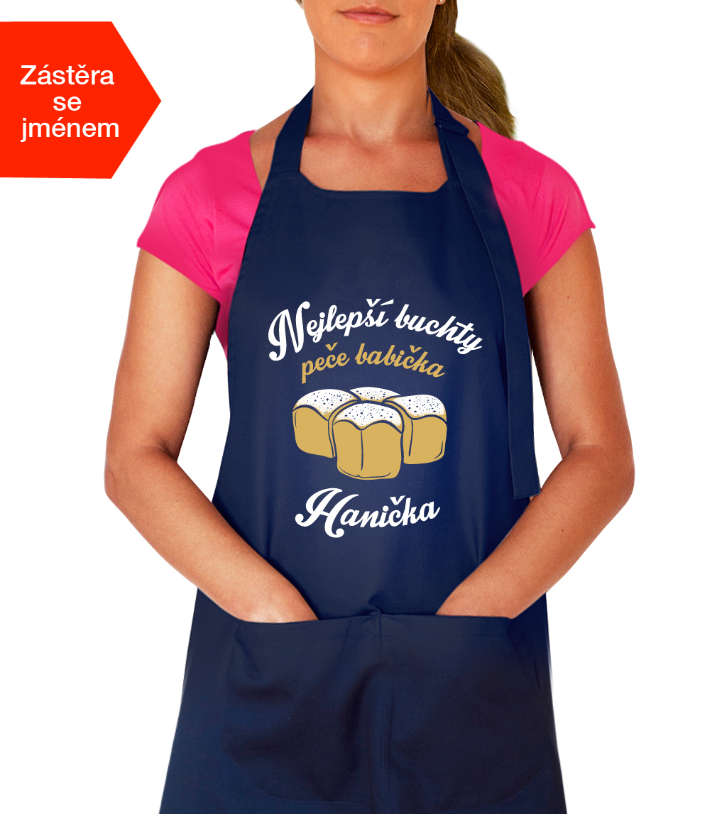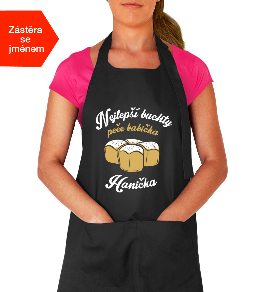 Co vybrat pro babičku k narozenininám nebo k Vánocům? To je každoroční problém, který vyřeší naše originální zástěra pro babičku. Vyberte si zástěru pro babičku, která peče ty nejlepší buchty na světě. Na zástěru vytiskneme jméno vaší babičky. Kvalitní zástěra na vaření od francouzského výrobce je vyrobena ze 100% bavlny v gramáži 280 g/m2. Zástěra má kolem krku nastavitelný řemínek s přezkou, vepředu dvojitá kapsa. Zástěra pro babičku na vaření je potištěna nejmodernější digitální technologií. Potisk je měkký, příjemný na dotek a neloupe se. Zástěra na vaření pro babičku je oblíbený dárek nejen k Vánocům. Vyberte si krásnou zástěru na vaření i vy a přesvědčte se, jak je naše zboží kvalitní. S výběrem vám pomohou kladné recenze našich spokojených zákazníků na Heureka.cz.