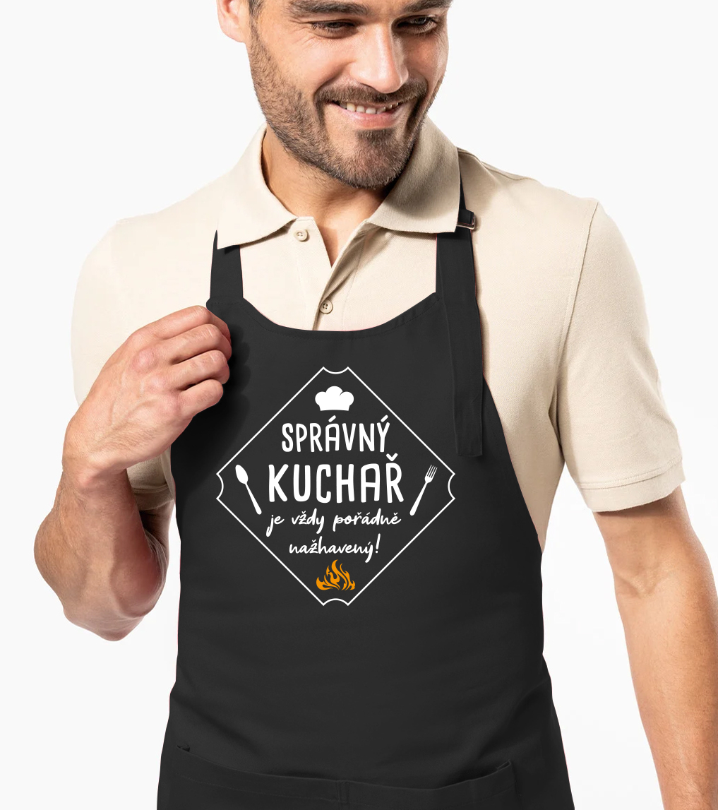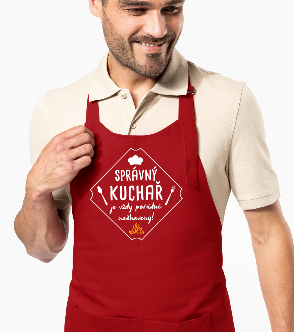 Tato vtipná zástěra pro muže je nejlepší outfit do kuchyně nebo ke grilu pro každého žhavého kuchaře. Když vařit - tak stylově. Garantujeme vám, že v této zástěře to v kuchyni rozpálí každý muž! Pořiďte zástěru jako originální dárek, který je zároveň praktický a obdarovaného opravdu potěší. Zástěra na vaření je vyrobená ze 100% bavlny vyšší gramáže 280 g/m². Zástěra pro muže je opatřená laclem a řemínkem s kovovou sponou pro nastavení délky. Potisky na zástěrách mají prvotřídní kvalitu a skvěle vypadají. Jen u nás si můžete vybrat z široké škály originálních motivů zástěr pro muže, ze kterých si vybere každý správný kuchař! Za kvalitu našich produktů mluví výborné recenze našich spokojených zákazníků.